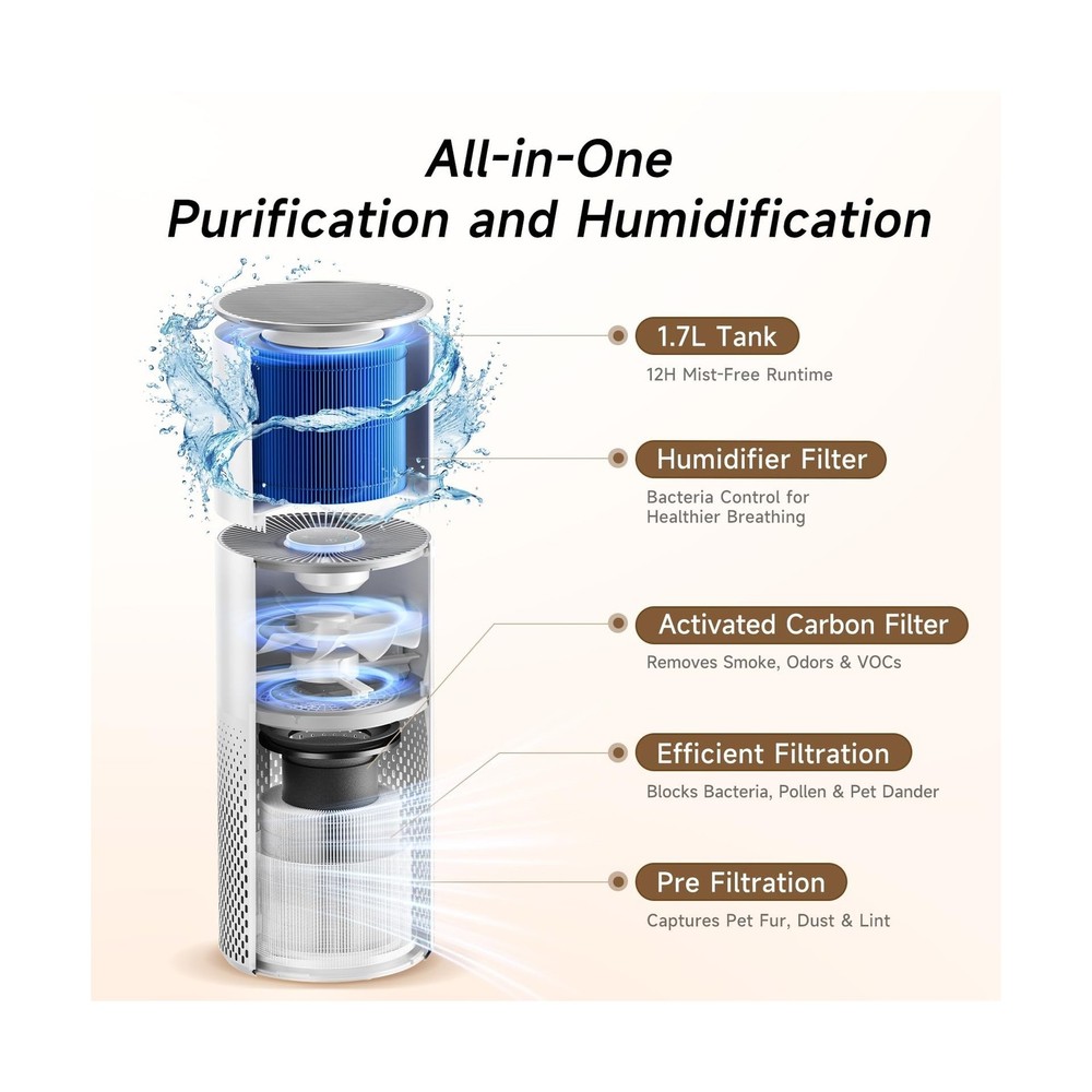 Afloia Humidifier and Air Purifier in One, Air Purifier and Evaporative Humid...
