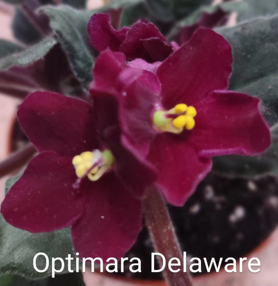 OPTIMARA DELAWARE (3153) 06/02/1977 (Holtkamp) Single purple-red star. Medium green, plain, heart-shaped to ovate, hairy. STANDARD I am a collector and hobby grower of African Violets. All plants are grown from leaves of my own plants using the best soil and additives. You are purchasing a LEAF POT which is a newly sprouted or very early propogated plant in a 2oz or 3oz cup. I have started the plant for you from a leaf under MY growing conditions. Your conditions will probably differ from mine. The tiny plant needs time to mature. No repotting, the plant will not survive. Very, very light moisture. If you are new to growing violets, I strongly urge you to find information on your specific variety from the AVSA website or from hundreds of videos available. The plant you will receive is the one in the picture (in the cup). When available, I will include a picture of my stock plant in bloom to give a better idea of bloom and leaf size, shape and color. This is NOT the plant you receive. The Leaf Pots are not in bud or in bloom. SHIPPING : Shipping is a flat fee of $12.00. All plants are shipped via USPS Priority Mail, using fiberglass insulation. ***** It is YOUR responsibility to monitor your weather. Need me to hold an order for a few days? Send a message. My plants are very carefully packed for shipping. Occasionally, there may be spilled soil or a broken leaf. Broken leaf? Snip the very edge of the stem and put it back in the soil. You will have a new plant in no time! This is not considered damage. If you receive a box that has been damaged during shipment, please message me with pictures UPON RECEIPT. Most issues can be resolved through good communication. Shipping is to the US only. Your tracking number indicates your delivery date. You will also receive emails updating the exact delivery date. You are responsible to ensure the box does not sit out in hot or cold temperatures. The plants will cook or freeze in extreme temperatures. This "damage" is your responsibility and is not refundable. Feel free to message me with any questions prior to purchase. Responses to inquiries are usually within one day. I am happy to share violet chat! THANK YOU AND ENJOY GROWING YOUR PLANTS!