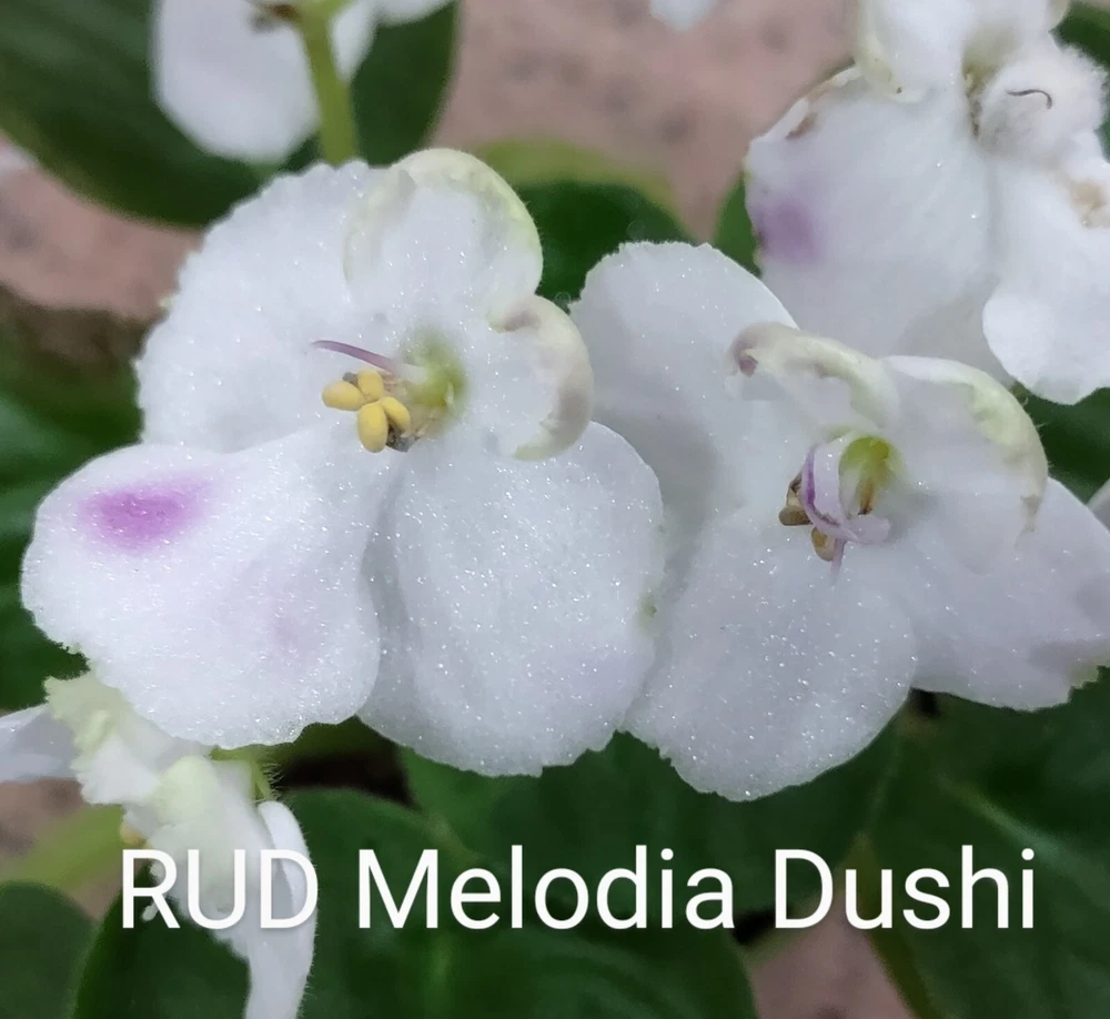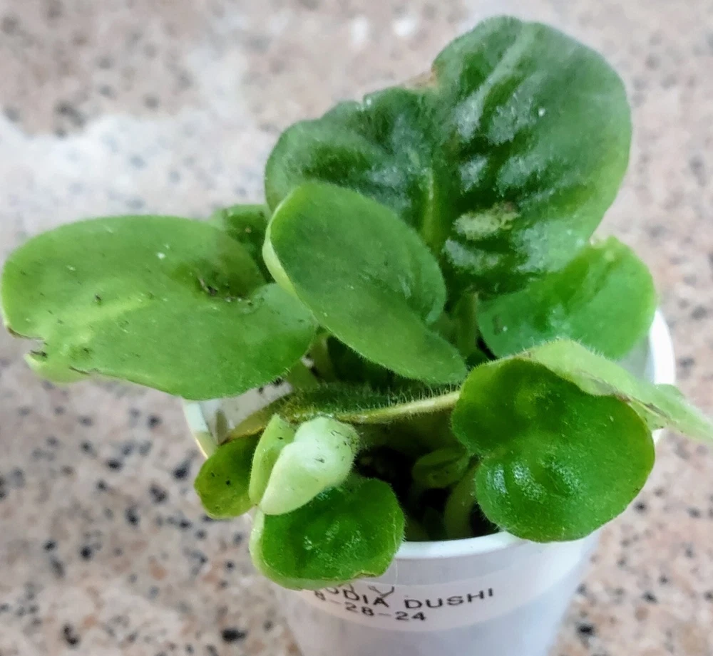 RUD-MELODIYA DUSHI White pansy with deep amethyst patches. White ruffled edges. Medium green, plain. STANDARD I am a collector and hobby grower of African Violets. All plants are grown from leaves of my own plants using the best soil and additives. You are purchasing a LEAF POT which is a newly sprouted or very early propagated plant in a 2oz or 3oz cup. I have started the plant for you from a leaf under MY growing conditions. Your conditions will probably differ from mine. The tiny plant needs time to mature. No repotting, the plant will not survive. Very, very light moisture. If you are new to growing violets, I strongly urge you to find information on your specific variety from the AVSA website or from hundreds of videos available. The plant you will receive is the one in the picture (in the cup). When available, I will include a picture of my stock plant in bloom to give a better idea of bloom and leaf size, shape and color. This is NOT the plant you receive. The Leaf Pots are not in bud or in bloom. SHIPPING : Shipping is a flat fee of $12.00. All plants are shipped via USPS Priority Mail, using fiberglass insulation. ***** It is YOUR responsibility to monitor your weather. Need me to hold an order for a few days? Send a message. My plants are very carefully packed for shipping. Occasionally, there may be spilled soil or a broken leaf. Broken leaf? Snip the very edge of the stem and put it back in the soil. You will have a new plant in no time! This is not considered damage. If you receive a box that has been damaged during shipment, please message me with pictures UPON RECEIPT. Most issues can be resolved through good communication. Shipping is to the US only. Your tracking number indicates your delivery date. You will also receive emails updating the exact delivery date. You are responsible to ensure the box does not sit out in hot or cold temperatures. The plants will cook or freeze in extreme temperatures. This "damage" is your responsibility and is not refundable. Feel free to message me with any questions prior to purchase. Responses to inquiries are usually within one day. I am happy to share violet chat! THANK YOU AND ENJOY GROWING YOUR PLANTS!