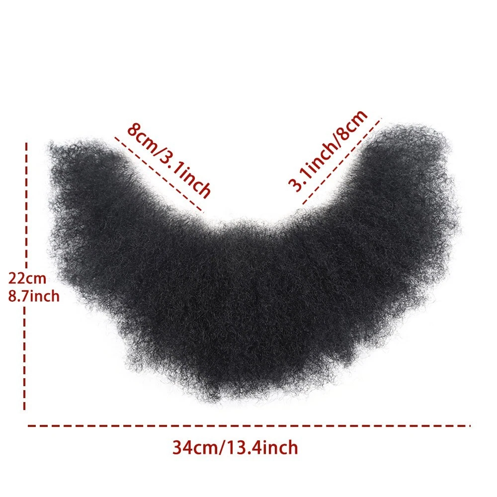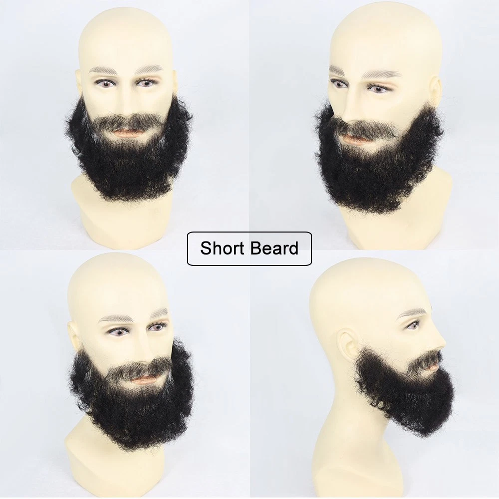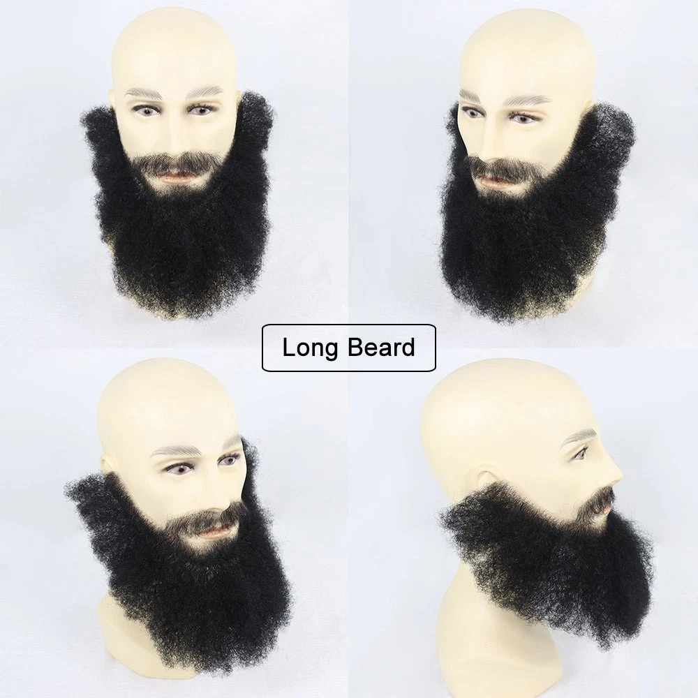 Afro Curly Men's Fake Beard Human Hair Face Beard Reusable Makeup Mustache