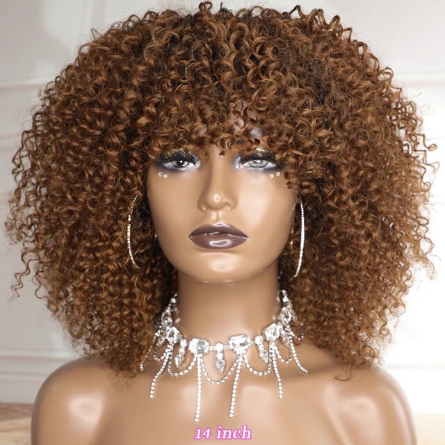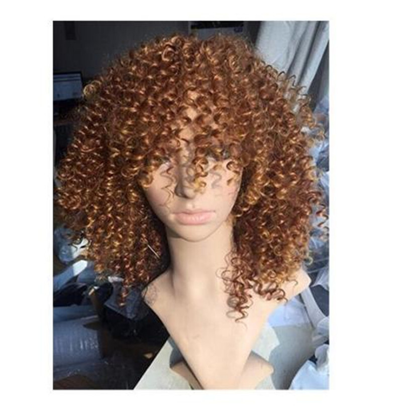 Afro Kinky Curly Brown Synthetic Heat Safe Wigs With Bangs Glueless Wig Natural Afro Kinky Curly Brown Synthetic Heat Safe Wigs With Bangs Glueless Wig Natural Item #: HJ020086 Feature: Excellent Quality straight 100% Japanese Kanekalon (high quality one-) made fiber wig with a wig-centering design, It was made of high temperature wire, Therefore, it can be straightened by hair sticks . You will be amazed by the quality. Wearing it, it can bring you more confidence, and more charm! It is both natural looking and soft touch. You can wear it to parties as well as for daily use. The size is adjustable and no pins or tape should be required. It should be fit on most people. All you should need to do is adjust the hooks inside the cap to the correct size to suit your head. The item is Easy to wash and care just using a little mild shampoo in cold water. Note: The display pictures shown online were taken by our professional man using our own model. There would be slight difference on the model shape or colors from different person, please contact us if it does not look like the picture. Specification: Hair material: 100% Japanese Kanekalon (high quality one) made fiber. Top Material and design: Adjustable Monofilament Net. Don't curl it or iron it by using any hair machine You can wash it in cold water by hand,don't use the hair tomb,if so ,it will fall out Brand new, AAA High quality Hair type: We GUARANTEE that the hair we sell is 100% kanekalon fiber. Package include: 1xWIGS Payment Delivery details Terms of sales Payment We accept payment by Credit Card,Bank Transfer and other Payment that Aliexpress support. Payment must be receive within 7 days of auction closing. Please list your special requests(color,packages,value of declaration,etc.) when you make payment,or you send message to us. Delivery details Item Location : USA Shipping Method :USA post parcel (about 3 to 8 business days ) Handling Time: The items will be sent in 24 hours after clearing the payment. Shipping address: The items will be sent to your ebay address, anything change , pls contact us before payment. Terms of sales All the destination country local tax is the buyer responsibility. All the items will a "GIFT" description and a Low value for faster custom process. We suggest all buyers to insure their items.