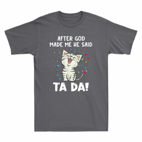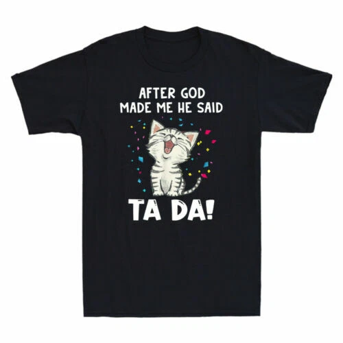 After God Made Me He Said Cat Ta-da Funny Cat Gift Vintage Men's Black T-Shirt