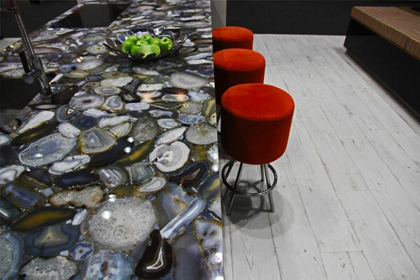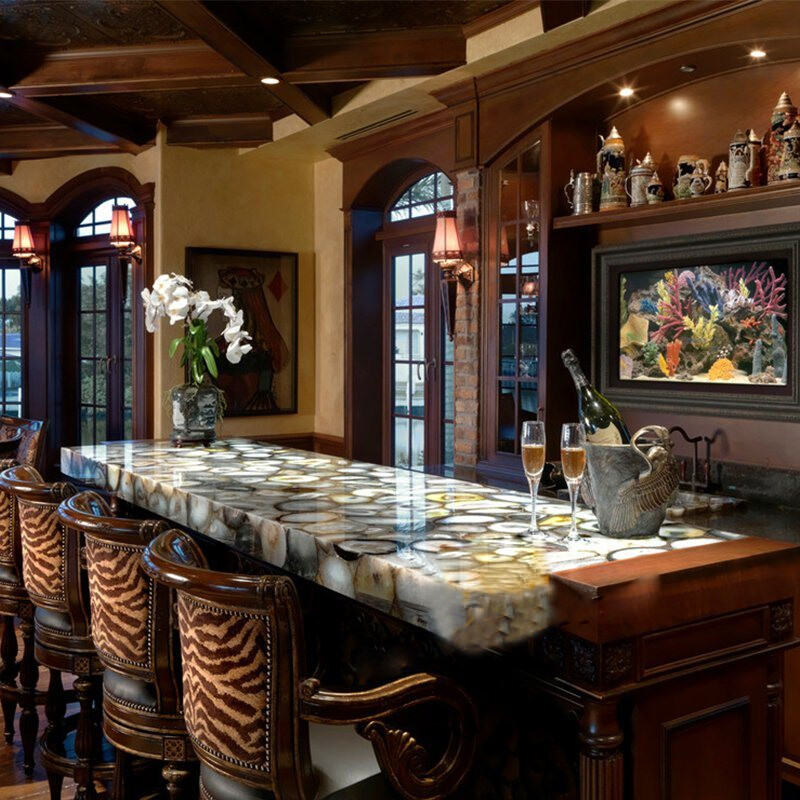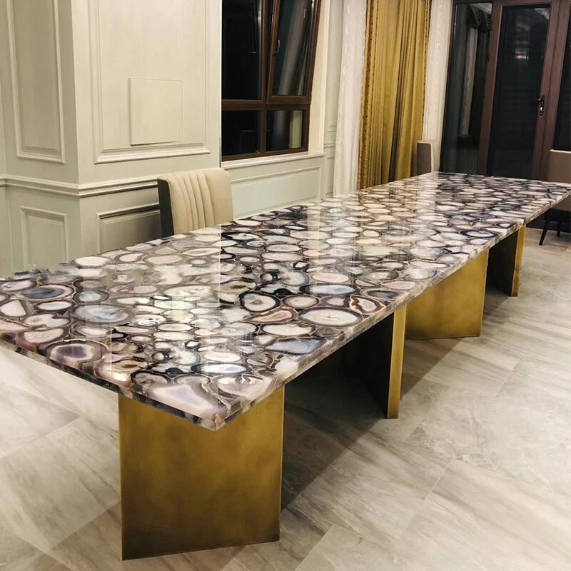 Welcome To Stone-Craft- Creations Shop Description Very unique Art by Indian Artist ,Coffee/Side Table top Used Material: Natural Agate Stones Arts Size: According To Size Variation Color: As Photo Shape: Rectangle Pattern: Handmade Room: Bedroom, Dining Room, Hallway, Home Office/Study, Kid’s Bedroom, Kitchen, Laundry/Utility Room, Living Room,Patio, Playroom Packaging: Wood & Foam Export Packing Shipping: Air Can Be customize ,Please Message us your desired Size 1. It can be used as a Dining Table, Guest table, coffee table, center table top in show room as well as a gift for your loved ones. 2. The table top is made in Agra India & fully handmade. 3. The top will be delivered by FedEx or DHL free of cost door to door. 4. If there is any local tax,custom duties or Vat will be paid by the buyer at the destination. 5. The parcel is dispatch with proper packing & fully insured covering all kind of risk. 6. To maintain the table top is simple soap & water & dry cotton cloth. 7. If You Are Looking Something Customize, Let Us Know We Will Make For You As Per Your Design, Size & Shape. 8.Table top does not includes any wooden, marble stand or base if you like to buy marble or wooden base or stand that will be charged extra. Marble Agate Table Tops We are Manufacturer & Exporter of marble agate table tops. These marble agate table tops have different shapes like Round Table top, Octagonal Table Tops, Rectangle / Dining table tops, Square Table tops, Chess Table tops, Taj Mahal Table tops, Custom Designs Table tops also make marble Table top Base and Stand. Then we can be used as dining tables, coffee tables, Center tables, conference tables, chess boards, reading tables, bar tables , Garden table, side and corner tables or any other use as per the indoor and outdoor decor. They can also be placed outdoors in the garden, as marble is stain free, offers great resistance to the forces of nature, and can withstand heavy temperatures. We also meet customized requirement and offer our marble table tops at industry leading prices. About Agate Stone- Agate is a rock consisting primarily of cryptocrystalline silica, chiefly chalcedony, alternating with microgranular quartz. It is characterized by its fineness of grain and variety of color. Although agates may be found in various kinds of host rock, they are classically associated with volcanic rocks and can be common in certain metamorphic rocks. Ancient use of agate stone Agate is one of the most common materials used in the art of hardstone carving, and has been recovered at a number of ancient sites, indicating its widespread use in the ancient world; for example, archaeological recovery at the Knossos site on Crete illustrates its role in Bronze Age Minoan culture Types Of Agate 1. Fortification Agate This is the most common and distinctive type of agate. In these agates, bands crystallized into concentric layers that more or less follow the shape of the cavity. The banding resembles an aerial view of a fort 2. Water-Line Agate (also called water-level or onyx) During its formation, silica-rich solution either entered the cavity slowly laying one band at a time, excess water drained out leaving a small amount of silica to settle out into separate bands, or the vesicle filled under low pressure. In any case, the silica crystallization in water-level agates is controlled by gravity in one orientation, forming a stack up of parallel bands. 3. Shadow Agate Some agates exhibit a shadow effect in which there is what appears to be movement across the agate layers when the specimen is rocked back and forth (or your orientation to the specimen moves). This optical effect only occurs when there are alternating translucent and opaque bands. It is caused when light goes into the agate, but is not reflected out. 4. Tube Agate Tube Agate During the formation of some agates, parallel projections of tiny hair-thin mineral rods grow first within the silica gel, around which later the chalcedony agate micro-crystals form. In some cases the inclusions remain, but sometimes they weather away leaving hollow tubes that subsequently fill in with silica. 5. Eye Agates This mysterious agate characteristic is believed to be formed when most of the silica gel drains from the cavity, leaving only a droplet that “beads up” on the inside wall of the cavity. This droplet crystallizes into solid chalcedony “eyes”. In some cases, crystal growth will continue from this droplet in a manner similar to the formation of stalactites in caves. Later, the pocket fills in with the usual deposition of chalcedony microcrystals. 6. Plume Agate These agates initially had formations on their outside layer that formed prior to the deposition of chalcedony bands. They are filament growths of mineral inclusions that resemble ferns or feathers. 7. Geode Agate Geode Agate In some cases the supply of silica-rich water runs out before the entire cavity fills in. When there is a hollow center within a crystalline outer fill, the specimen is considered a geode. Not all geodes have agate banding, but many do. Also, the inner layers can form into several different types of silica mineral crystals and may even have other types of mineral crystals. 8. Moss Agate Moss Agate Moss agates have clusters of mineral inclusions that resemble plants, trees, or landscapes. Most moss agate inclusions are comprised of iron or manganese oxide. In some cases, the inclusions inhibit chalcedony banding allowing the mineral clusters free reign to grow within the silica gel. 9. Seam Agate Seam agates for in cracks within host rock, rather than in rounder pockets. The bands form in parallel rows that follow and fill in the crack or seam.