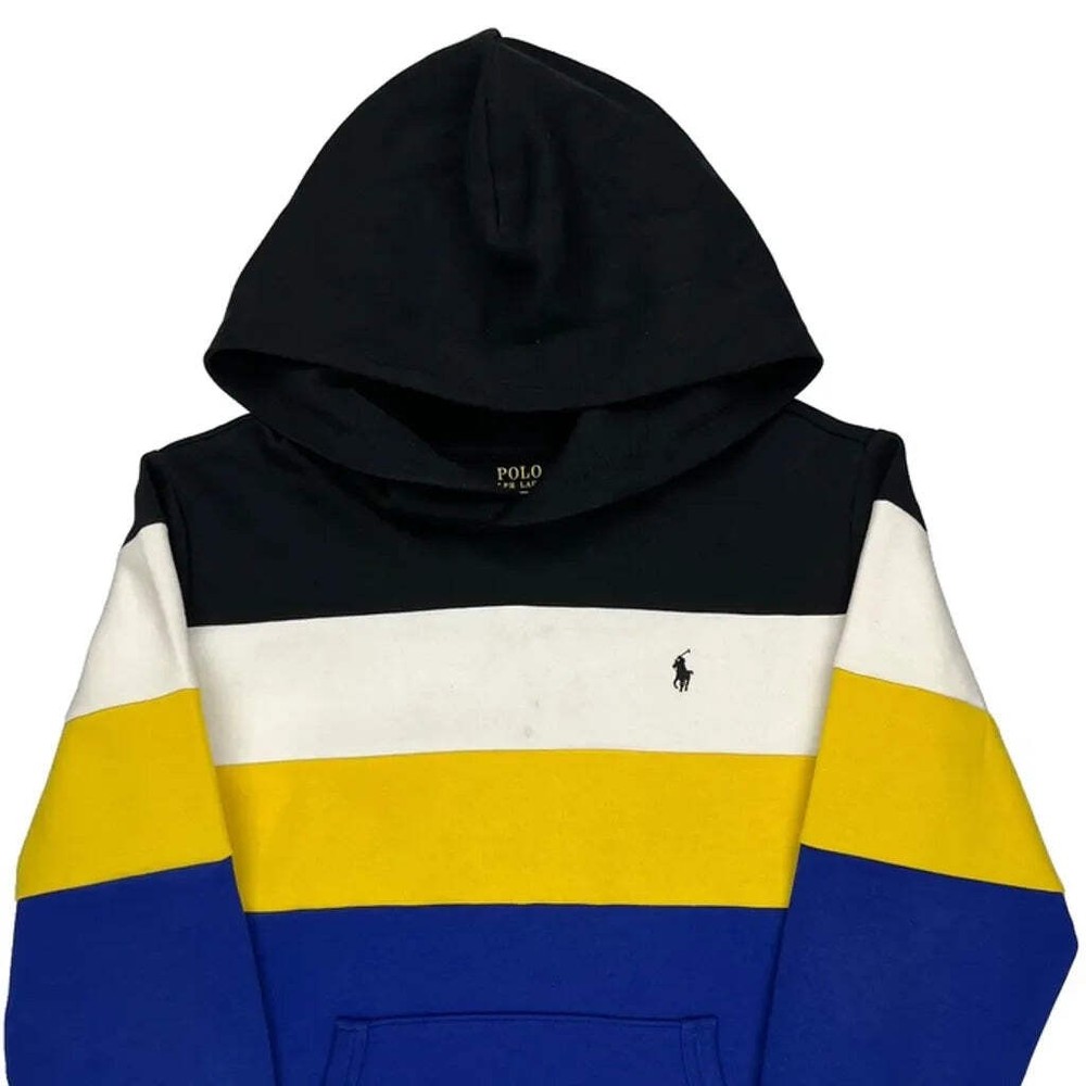 Features: Drawstring Material: Cotton Sleeve Length: Long Sleeve Color: Black Type: Hoodie Department: Boys Fabric Type: Cotton Personalize: No Pattern: Horizontal Stripes Neckline: Hooded Occasion: Casual Country of Origin: United States Size: Large Season: Fall Style: Casual Fit: Regular Fit Vintage: Yes Accents: Drawstring Brand: Polo by Ralph Lauren