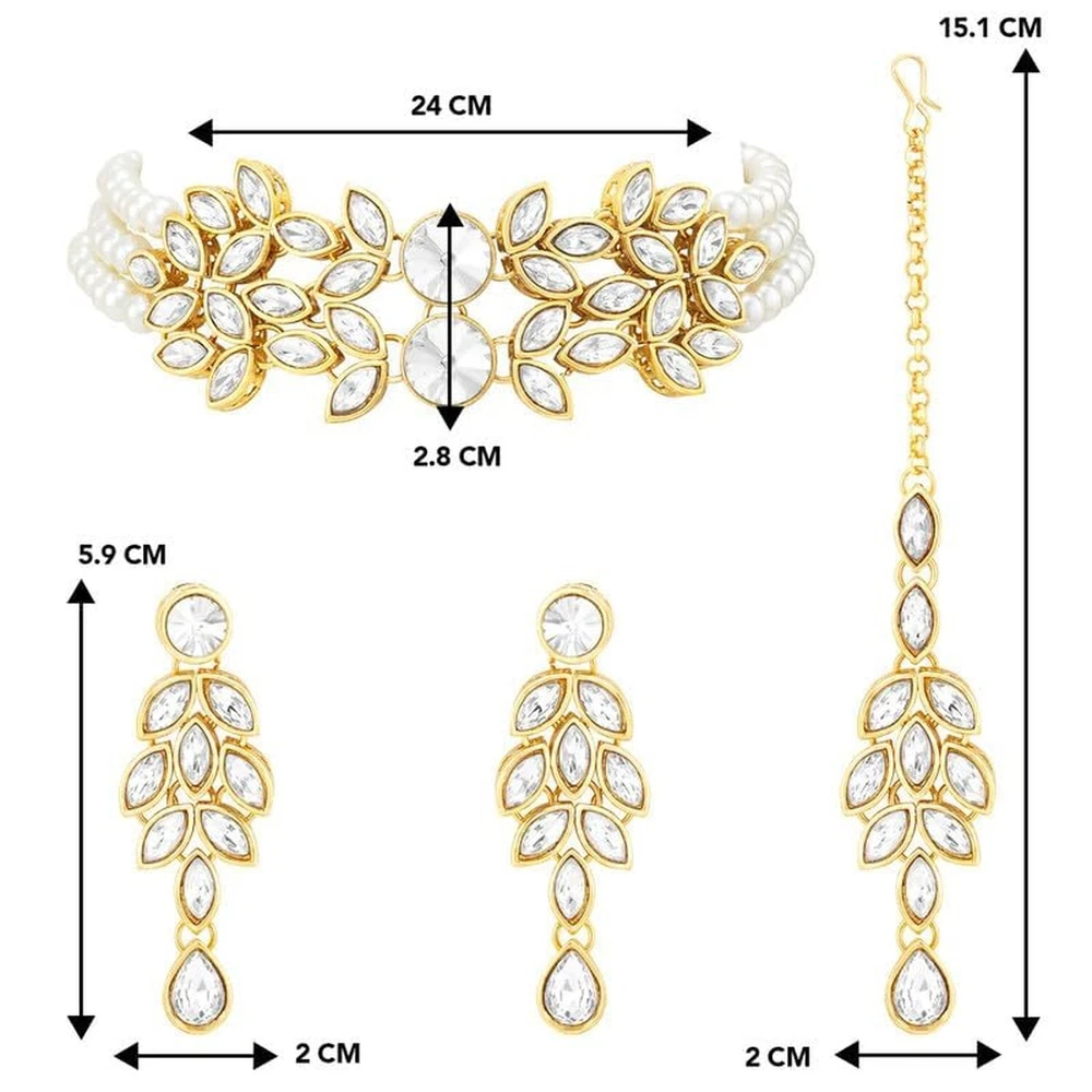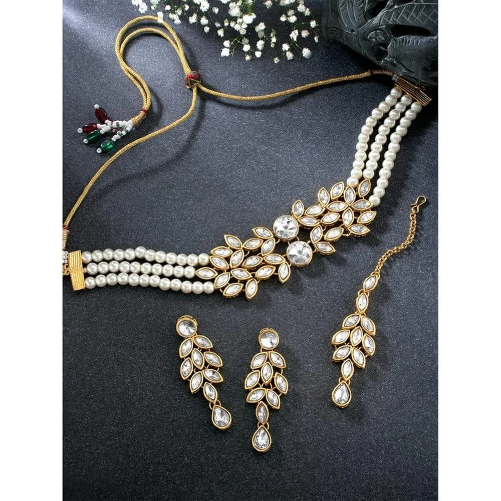 Aheli Bridal Crystal Pearl Choker Necklace with Drop Earrings Indian Traditional Bollywood Jewelry Set Gift for Women Product Details Color: White Brand: Aheli MPN: AH-PF24N10204 UPC: Does not apply EAN: Does not apply Item model number : AH-PF24N10204 Department : womens Date First Available : October 31, 2020 Brand, Seller, or Collection Name: Aheli Metal stamp: no metal stamp Metal: Zinc Material: Metal Gem Type: No Gemstone Clasp: Lobster Clasp