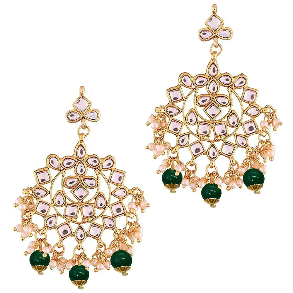 Aheli Traditional Gold Plated Kundan and Pearl Dangle Drop Earrings Gift for Women Product Details Color: Green Brand: Aheli MPN: AH-PF37N7064 UPC: Does not apply EAN: Does not apply Item model number : AH-PF37N7064 Department : womens Date First Available : May 19, 2022 Brand, Seller, or Collection Name: Aheli Metal stamp: no metal stamp Item Length: 9.25 inches Clasp: Lobster Clasp Ring size: adjustable Number of stones: 5 Model number: AH-PF37N7064G
