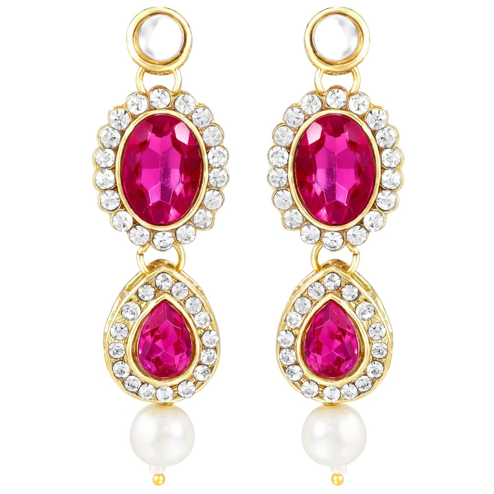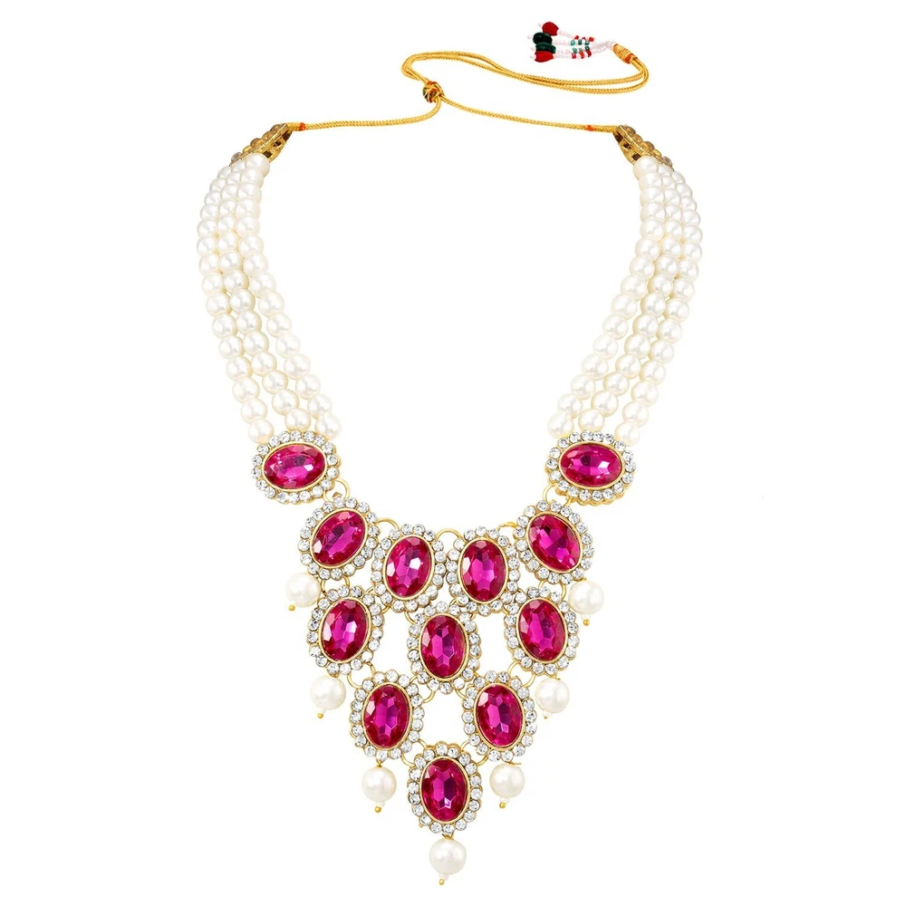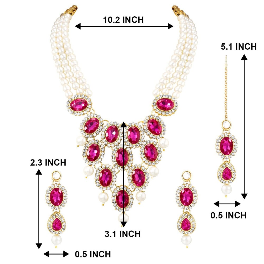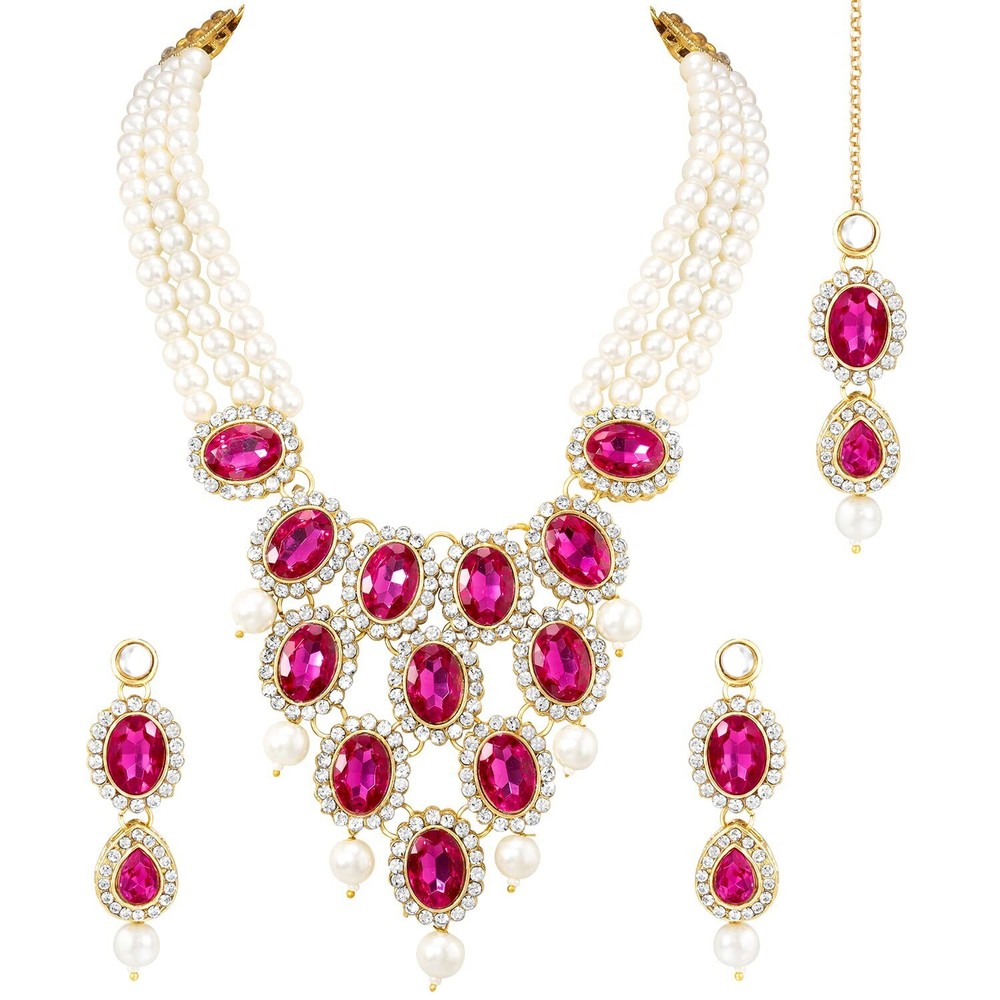 Aheli Traditional Gold Plated Pearl Necklace with Drop Earrings and Maang Tikka Ethnic Jewelry Set Gift for Women Product Details Color: Rani Pink Brand: Aheli MPN: AH-PF28N225 UPC: Does not apply EAN: Does not apply Item model number : AH-PF28N225 Department : womens Date First Available : May 16, 2024 Brand, Seller, or Collection Name: Aheli Metal stamp: no metal stamp Metal: Zinc Material: Metal Gem Type: No Gemstone Clasp: Lobster Clasp Ring size: adjustable