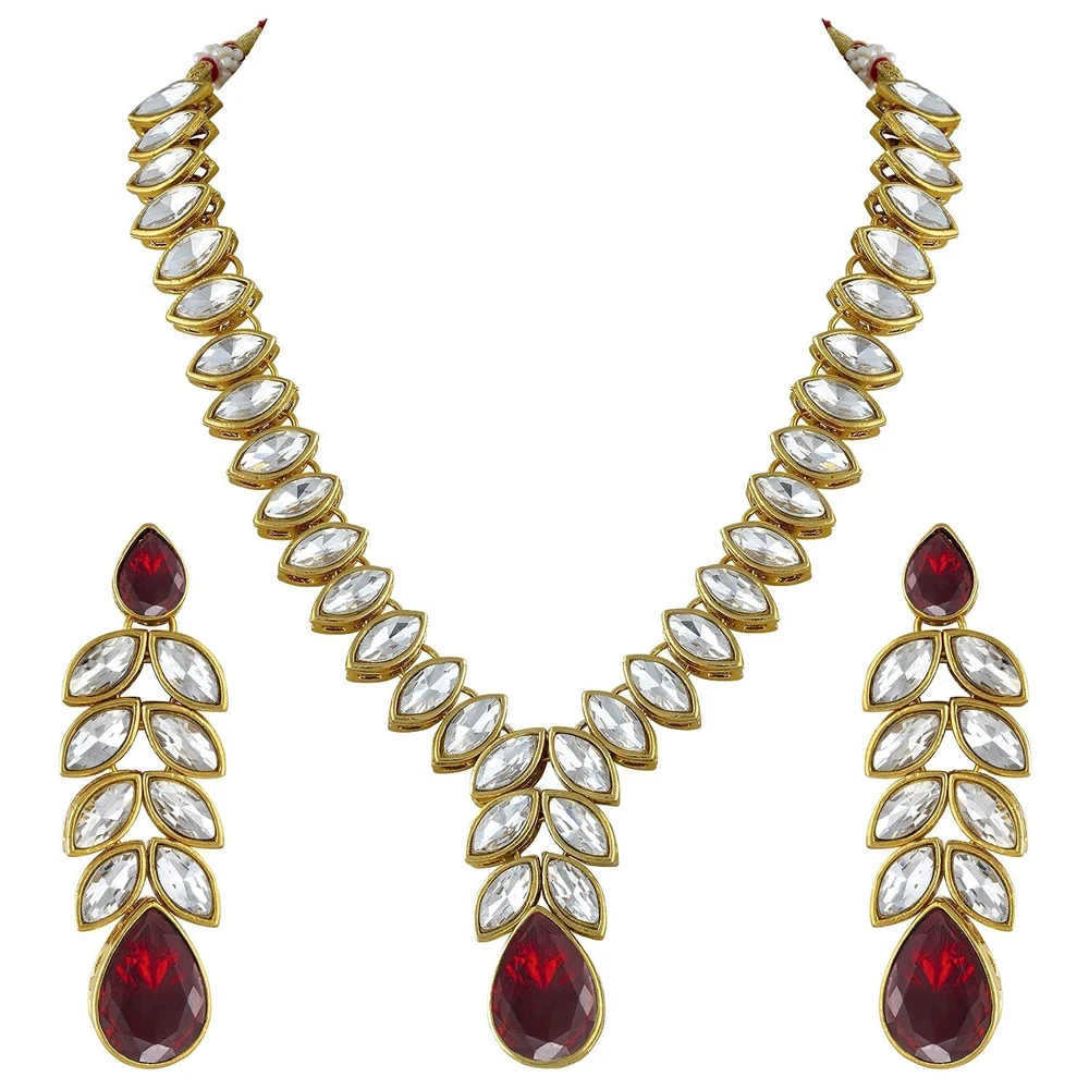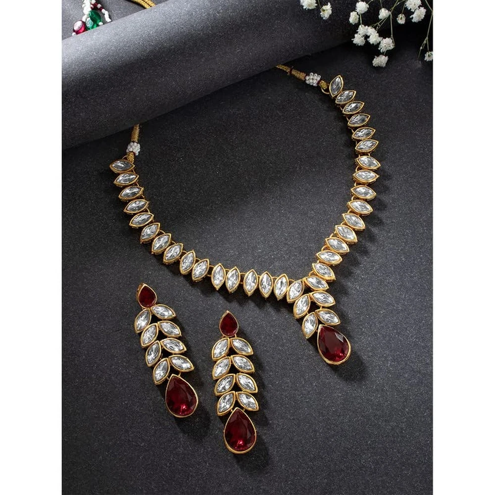 Aheli Gold Plated Traditional Crystal Studded Long Necklace Earrings Jewellery Set Gift for Women Product Details Color: Maroon Crystal Studded Brand: Aheli MPN: AH-PF24N15 UPC: Does not apply EAN: Does not apply Item model number : AH-PF24N15 Department : womens Date First Available : March 9, 2022 Brand, Seller, or Collection Name: Aheli Metal stamp: no metal stamp Metal: No Metal Type Material: Zinc Gem Type: No Gemstone Item Length: 7.87 inches Clasp: Lobster Clasp Number of stones: 5