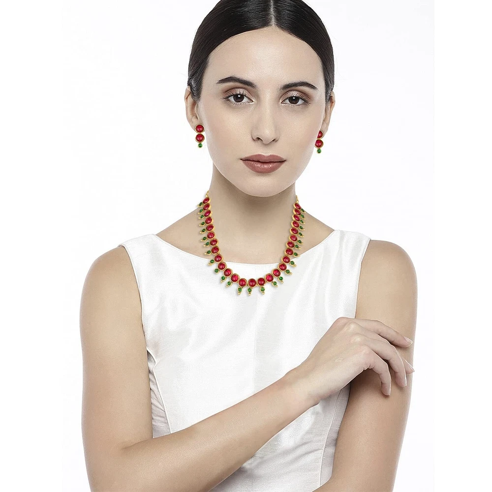 Aheli Indian Traditional Bollywood Necklace Earrings Jewelry Set Gift for Women Wedding Party Ethnic Fashion Product Details Color: Red & Green Brand: Aheli MPN: AH-PF04N501 UPC: Does not apply EAN: Does not apply Item model number : AH-PF04N501 Department : womens Date First Available : May 16, 2024 Brand, Seller, or Collection Name: Aheli Metal stamp: Not stamped Material: Metal Clasp: Lobster Clasp
