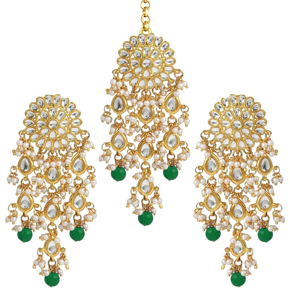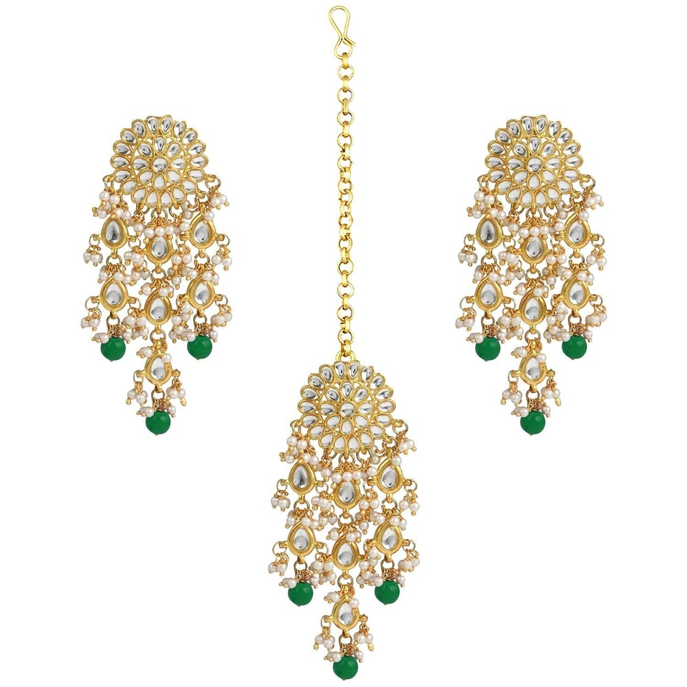 Aheli Kundan Studded Beaded Chandelier Classic Drop Earrings Maang Tikka Indian Traditional Bollywood Jewelry Set Gift for Women Product Details Color: Green Brand: Aheli MPN: AH-PF26ET114 UPC: Does not apply EAN: Does not apply Item model number : AH-PF26ET114 Department : womens Date First Available : May 16, 2024 Brand, Seller, or Collection Name: Aheli Metal stamp: no metal stamp Setting: other setting type Item Length: 4.72 inches Chain: Bead Clasp: Lobster Clasp Ring size: adjustable Number of stones: 5 Model number: AH-PF26ET114G