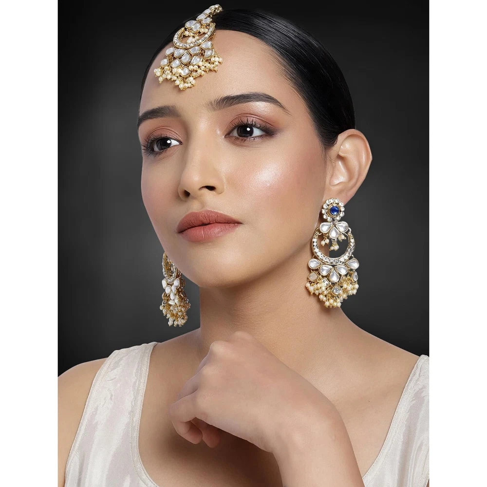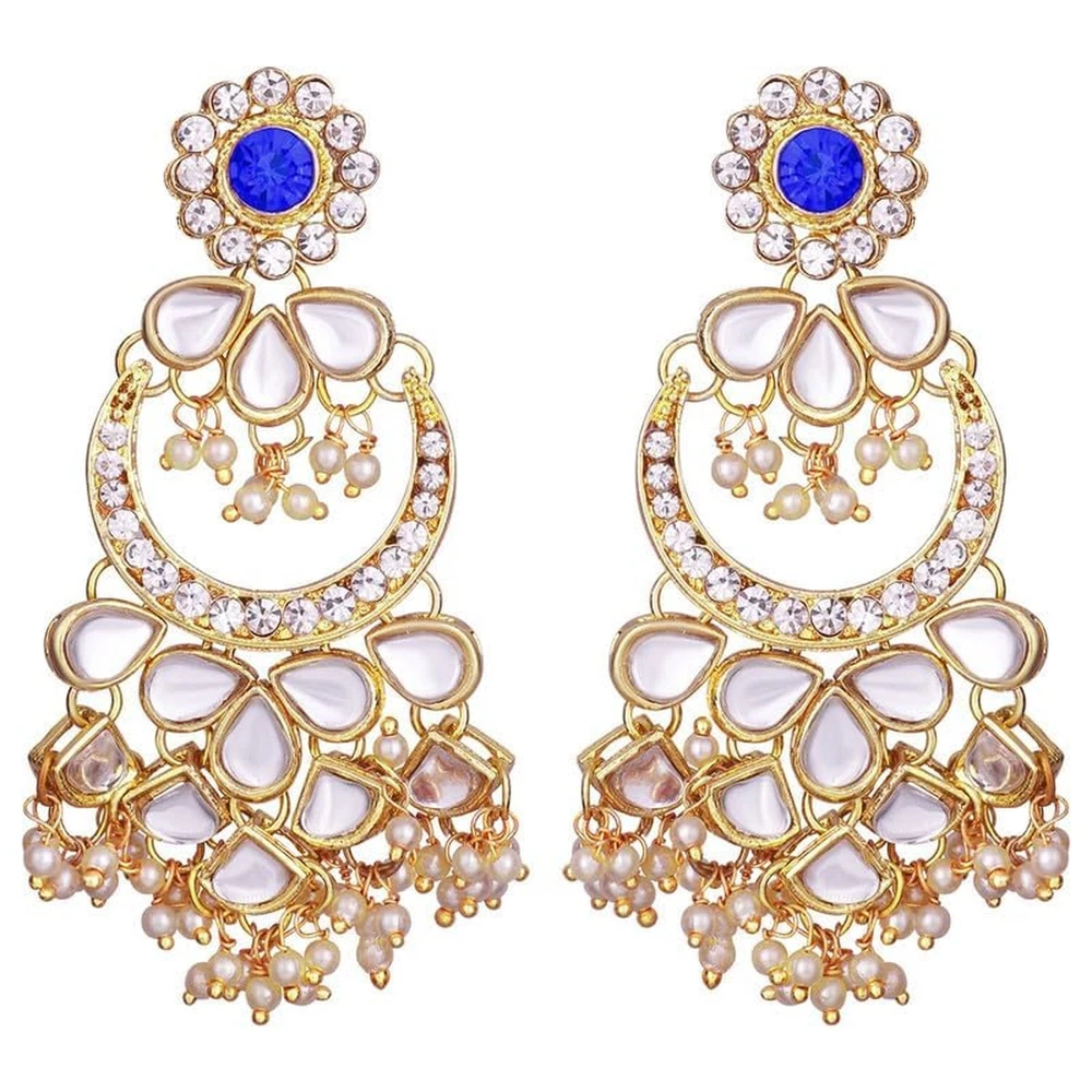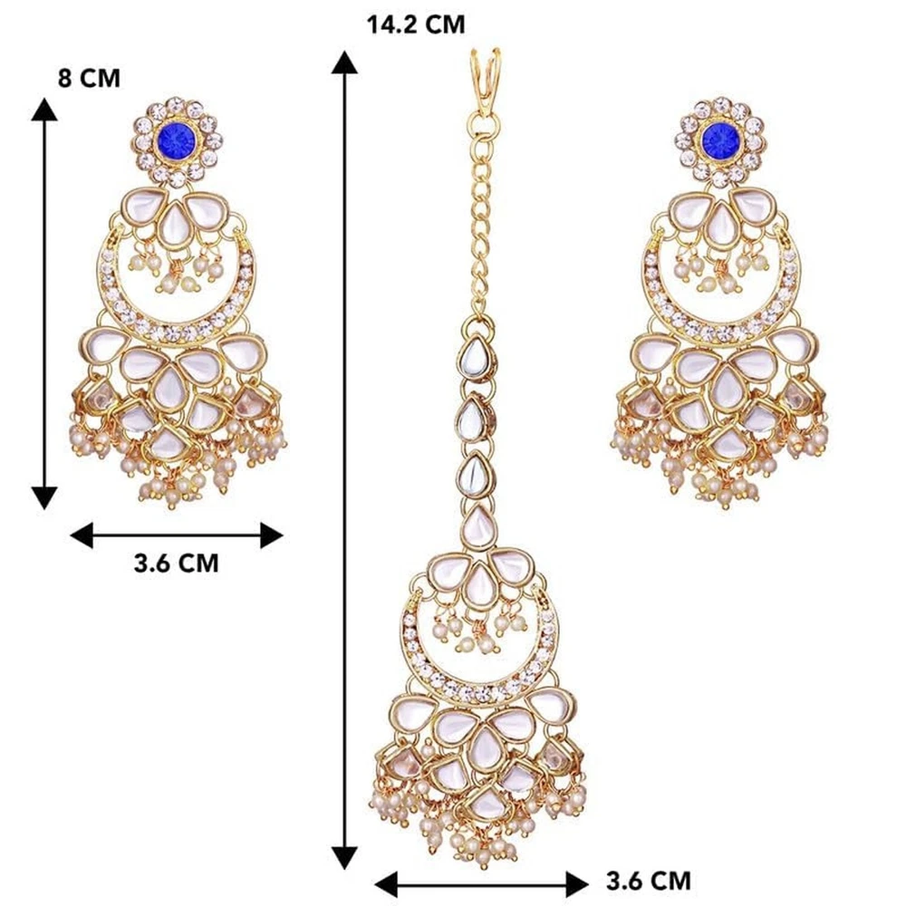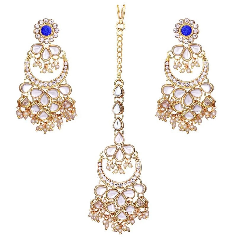 Aheli Kundan Pearl Chandbali Earrings with Maang Tikka Indian Traditional Bollywood Fashion Jewelry Set Gift for Women Product Details Color: Blue Brand: Aheli MPN: AH-PF24ET4153 UPC: Does not apply EAN: Does not apply Item model number : AH-PF24ET4153 Department : womens Date First Available : November 20, 2020 Brand, Seller, or Collection Name: Aheli Metal stamp: Not stamped Metal: Brass Material: Metal Item Length: 4.72 inches Clasp: Lobster Clasp Ring size: adjustable