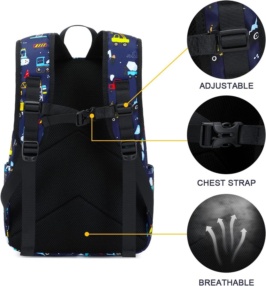 Aimeen Back to School Preschool Backpack,Little Kids Backpacks for Boys Girls Cute Lightweight Water Resistant Toddler Backpack With Chest Strap Product Details Product Dimensions: 5.5 x 11 x 15 inches Item Weight: 1.37 pounds Department: boys Country of Origin: China Age Range Description: Kid Capacity Total: 5 Liters Unique Design: Super cute cars printed backpacks school bag, fashionable, light-weight, soft and colorful, a perfect gift for kids.Suitable for Kids Age 3+.Could you imagine how happy kids will be when get the preschool backpack boys. Material: Toddler backpack for boys is made of durable and practical high quality water resistant polyester.The cars backpack design is much loved by boys as toddler backpacks, perfect for children going out for playing, hiking, travel, and so on. Approx dimensions:15H*11L*5.5W inch. The boys backpack toddler bookbag is enough to put everthing inside when go to school.It is suitable for every age group like preschool backpack,kindergarten backpack,elementary school bags or bookbags. Big Capacity:The main inner compartment of the boy backpack could put kids's books and other stuffs. The kids backpack boys is perfect for toddlers going to preschool or play dates.The adjustable padded shoulder straps offer support and comfort while the adjustable chest strap stabilizes the load throughout the day's activities.