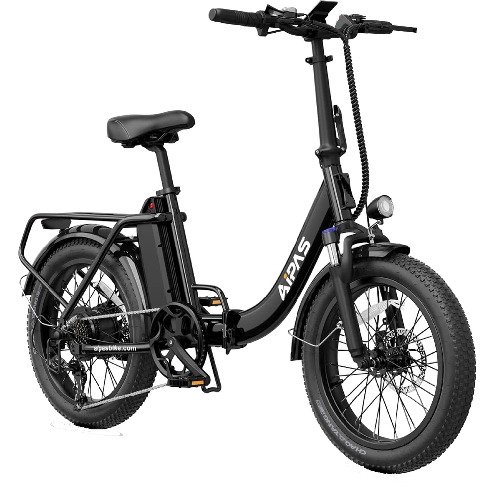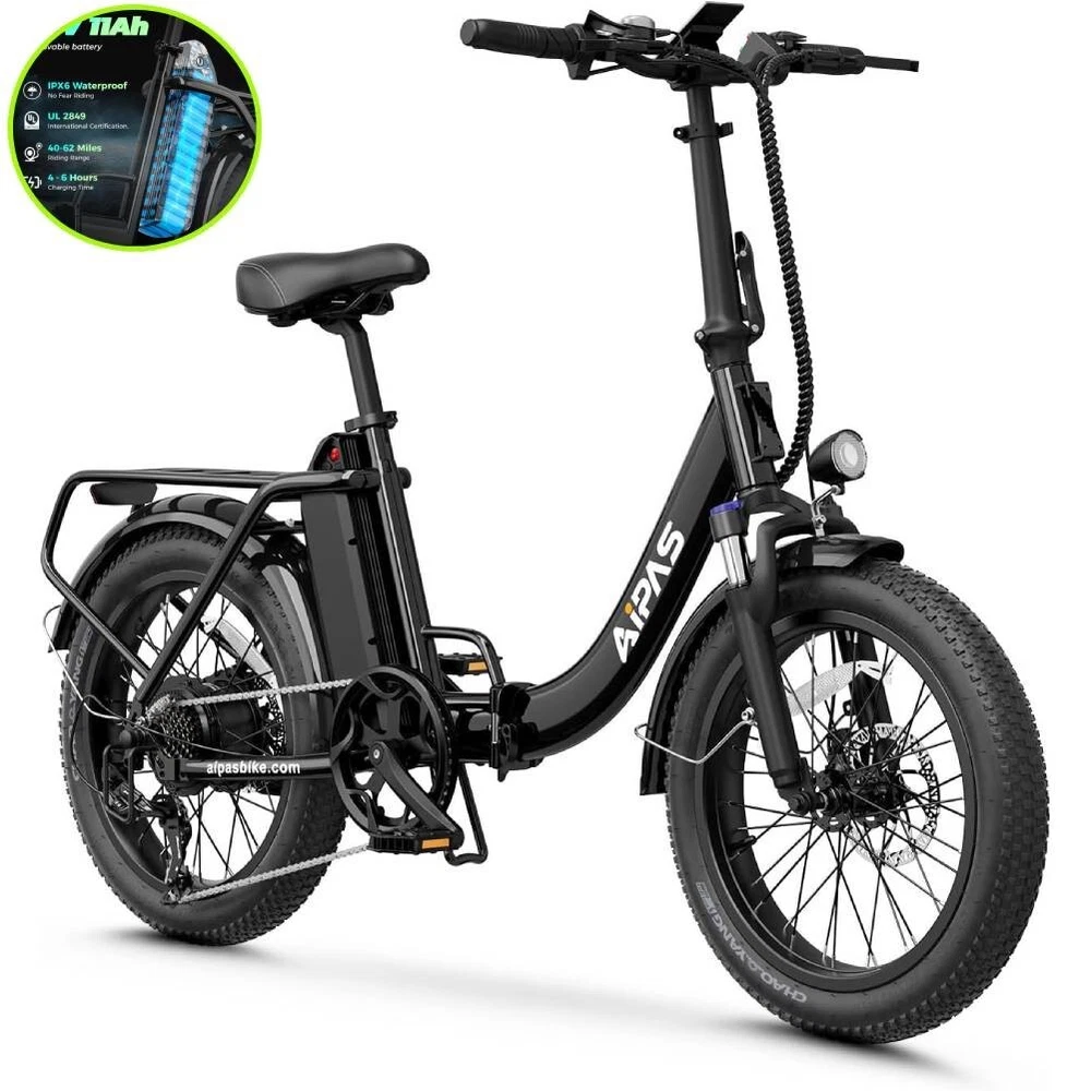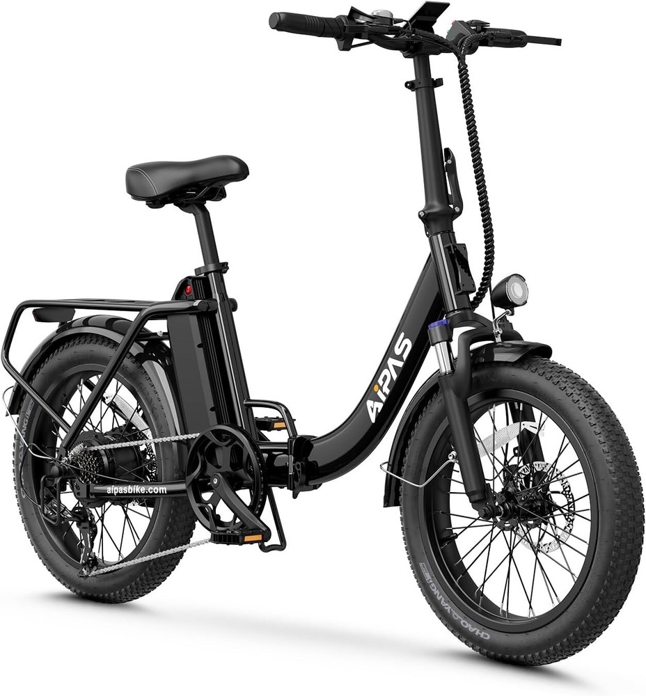 Custom-Built: No Number of Speeds: 7 Speed Handlebar Type: Cruiser Bar gtin13: Does not apply Model Year: 2024 Manufacturer Warranty: 6 Months Tire Type: Fat Tires Brand: Aipas Bike Type: E-Folding Bike Suspension Type: Front Material: Aluminum Alloy Maximum Speed: 28 mph MPN: Does not apply Item Length: 66.1 in Department: Unisex Adults Charging Time: More Than 5 Hours Frame Size: 20 in Maximum Range: Up to 62 mi Model: Aipas A4 Color: Black Gear Change Mechanism: Derailleur Gears Voltage: 48 V Motor Type: Rear Hub Motor Features: Front Light, Kickstand, Lithium Ion Battery Frame Number: ### Shifter Style: Thumb Shifter Wheel Size: 20 in UPC: Does not apply Item Height: 48 in Brake Type: Disc Brake - Mechanical