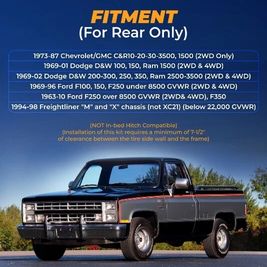 Aftermarketus Ebay Air Spring Helper Suspension Kit for 1973-1987 Chevrolet C10, C20, 1967-1987 C30 2WD - High Quality TORQUE 2071 Heavy Duty Air Spring Helper Suspension Kit for Pickup Truck - Kit includes: 2 air springs, all brackets, bolts & nuts - Does NOT include gauges, leveling switch, air compressor - Fits following vehicles: - 1973-1987 Chevrolet C10, C20, 1967-1987 C30 2WD - Easy to install - Increase stability and improve ride quality - Keep your vehicle level when you are hauling a heavy load - Improve steering control and braking when you are hauling or towing - Reduce tire wear - Reduce strain on rear suspension - Air helper springs will not increase your vehicle's weight-carrying capacity. Do not exceed the manufacturer's recommended weight limit. Replaces Firestone Ride-Rite: 2071 AirLift: 57215 Specifications Load-leveling capacity : 4,800 lbs Adjustable air pressure : 5 psi to 100 psi In-Bed Hitch Compatible : No Returns Payment Shipping Refund About Us & Feedback - Buyer will be charged 10% restocking fee after 30 day of the purchase for any unused returned item. - All Items must be returned with all original contents and components with prior authorization. - Return shipping shall be the responsibility of the buyer. We pay the shipping to send replacement. - In case of damaged parcel: * Carrier might damage items during shipping. * Please inspect the package well before accepting the shipment from the carrier. * To report a damage parcel, please contact us. * We will follow up and file a "damage claim" with the carrier. * All shipping, packaging materials and boxes must be saved. * Carriers will pickup the damaged item for inspection. - We accept PayPal and only ship to a confirmed address. - We accept E-Check through PayPal, Will ship after checks clears. (usually takes 7-10 days. - Items will ship out once the payment is made. - Checkout is expected within 3 days of auction close and payment within 4 days. - Unpaid auction wins will be forfeited after 4 days. - All orders are processed within 2 business day of receipt of payment. - The tracking number will be sent to you via e-mail when items are shipped. - Local pick up is available. Please email for arrangements. - Only ship to the confirmed address provided by PayPal. Please make sure your address in PayPal matches the address you would like us to ship to. - Address changing must be confirmed by our customer service before payment. - We DO NOT ship to Hawaii, Alaska, APO, FPO, and Puerto Rico. - Shipping fees and return fees are not refundable. Aftermarket US offers a Warranty for US customers on Torque Parts Truck & Trailer Air Springs, Air Brake Components, Wheel Seals. We warranty our rolling lobe (reversible sleeve) and convoluted air springs for semi-trucks and trailers for a limited lifetime. Every other product that we offer including convoluted air springs for pickup trucks, our cabin (sleeper) air springs, air brake components, and wheel seals are warrantied for one (1) year unlimited miles. Torque Parts is confident that you will be 100% satisfied with your product that we offer a 30-Day Return Policy on unused and uninstalled products. Improper use or installation is not a manufacturers defect. Please see the Torque Parts warranty page for more details about Limited Lifetime Warranty details. Aftermarket US air suspension products are warranted to be free from defects in materials or workmanship for the warranty period from the date of purchase. Within this period, Aftermarket US will, at its sole option, repair or replace any components that fail in normal use. Such repairs or replacements will be made at no charge to the customer for parts, provided that the customer shall be responsible for any transportation and installation costs. This warranty does not apply to: (I) cosmetic damage, such as scratches, nicks and dents; (II) normal wear and tear, unless product damage has occurred due to a defect in materials or workmanship; (III) damage caused by accident, abuse, misuse, water, flood, fire, or other acts of nature or external causes; (IV) damage caused by improper installation; (V) damage to a product that has been modified or altered without the written permission of Aftermarket US Inc.; or (VI) damage to a product that has been installed on a vehicle suspension that been modified or altered. If the unit sent in is still under its original warranty, then the new warranty is 90 days or to the end of the original warranty, depending upon which is longer. THE WARRANTIES AND REMEDIES CONTAINED HEREIN ARE EXCLUSIVE AND IN LIEU OF ALL OTHER WARRANTIES EXPRESSED, IMPLIED, OR STATUTORY, INCLUDING ANY LIABILITY ARISING UNDER ANY WARRANTY OF MERCHANTABILITY OR FITNESS FOR A PARTICULAR PURPOSE, STATUTORY OR OTHERWISE. THIS WARRANTY GIVES YOU SPECIFIC LEGAL RIGHTS, WHICH MAY VARY BY JURISDICTION. IN NO EVENT SHALL Aftermarket US, INC. BE LIABLE FOR ANY INCIDENTAL, SPECIAL, INDIRECT, OR CONSEQUENTIAL DAMAGES, WHETHER RESULTING FROM THE USE, MISUSE, OR INABILITY TO USE THIS PRODUCT OR FROM DEFECTS IN THE PRODUCT. SOME JURISDICTIONS DO NOT ALLOW THE EXCLUSION OF INCIDENTAL OR CONSEQUENTIAL DAMAGES, SO THE ABOVE LIMITATIONS MAY NOT APPLY TO YOU. Aftermarket US retains the exclusive right to repair or replace (with a new or newly remanufactured replacement product) the product or offer a full refund of the purchase price at its sole discretion. SUCH REMEDY SHALL BE YOUR SOLE AND EXCLUSIVE REMEDY FOR ANY BREACH OF WARRANTY. To obtain warranty replacement, contact the vendor from which you purchased your Aftermarket US product. If purchased directly from Aftermarket US Inc. please contact Aftermarket US Technical Support for shipping instructions and an RMA tracking number. Securely pack the product and a copy of the original sales receipt, which is required as the proof of purchase for warranty repairs. Write the RMA tracking number clearly on the outside of the package. Send the product, freight charges prepaid, 