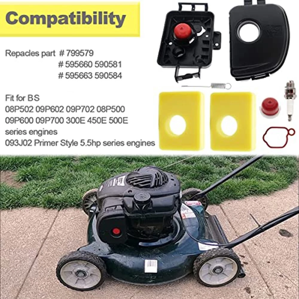 Product Description Features: *Compatibility: This cover kit is designed specifically for BS 300E, 450E, and 500E series lawn mower engines, a perfect fit and optimal performance. *Comprehensive Kit: The package includes essential components such as an air filter base, air cleaner cover, foam air filters, a governor spring, for Primer bulbs, and a gasket, providing everything needed for a complete replacement. *Firm Materials: Constructed from high-quality plastic and foam, this kit is built to withstand the rigors of outdoor use, long-lasting durability and reliability. *Easy Installation: Designed for user convenience, this kit allows for straightforward installation without the need for tools, making it accessible for all users. *Enhanced Engine Performance: By replacing worn or damaged parts with this kit, you can significantly improve your engine's efficiency and performance, it runs smoothly and effectively. *# 799579: Replacement part number # 595660 590581; Air filter base replacement part number # 595663 590584; Replacement part number for governor spring: # 596459: # 595663 590584; Replacement part # 596459 for governor spring. *Suitable for BS 08P502 09P602 09P702 08P500 09P600 09P700 300E 450E 500E series engines. Specifications: *Product Name:Suitable For BS 300E 450E Series Air Filter Kit *Material:sturdy *Size : As shown *Color:As shown *Number of Pieces:1 * air filter base, 1 * air cleaner cover, 2 * foam air filter, 1 * governor spring, 2 * for Primer bulb, 1 * gasket Package Content: 1 * Air Filter Base 1 * Air Cleaner Cover 2 * Foam Air Filter 1 * Speed Regulator Spring 2 * for Primer Bulb 1 * Sealing Gasket Note: 1. The real color of the item may be slightly different from the pictures shown on website caused by many factors such as brightness of your monitor and light brightness. 2. Please allow slight manual measurement deviation for the data. Payment Payment must be completed within 5 days. If you have any problems about payment, please contact us via ebay message. Delivery details We only ship to confirmed ebay Order addresses. Please comfirm that your Order address is in line with your shipping address. Please kindly note that the c ombined shipping is not provided because the shipping fee is calculated by weight. Also, the each additional item means exactly the the same color and size. It takes about 7 -15 working days to US; about 10-30 working days to other countries. Transit time may be a little delayed because of the bad weather and customs inspection . If you do not receive your item within 30 working days since payment finished, please contact us immediately for further assistance. Contact us We strive for 100% customer satisfaction! Positive Feedback is very important to us. If you have any questions, p lease feel free to contact us via "Ask seller a question" . We will reply your email within 24 working hours. On Feb 3, 2025 at 03:59:37 PST, seller added the following information: