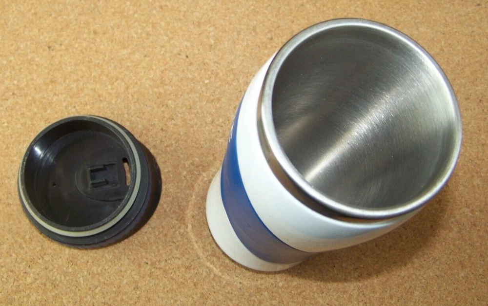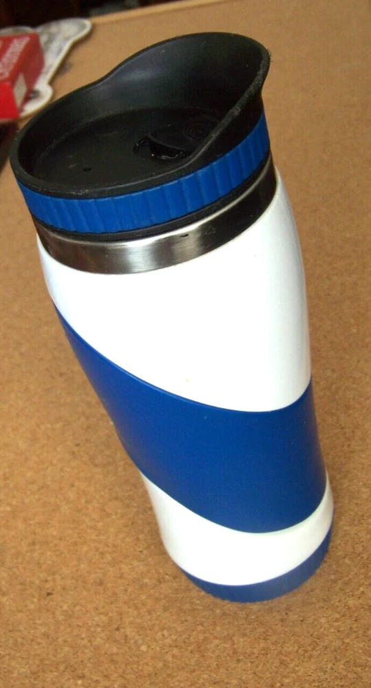 AF Air Force Academy metal interior travel mug water bottle slide open/close This blue and white metal travel water bottle measures about 8.5" tall, about 2.6" in diameter at the bottom. The slide open/close cover that is push on / pull off. Excellent condition, no major problems, has some light nicks and scuffs. Don’t forget to click on my "Stores" link, next to my eBay name, to see other items I currently have listed for sale, or you can copy and paste this address into your browser: stores.ebay.com/highcountrycollectibles SHIPPING INFORMATION Shipping to U.S. addresses is FREE! HIGH COUNTRY COLLECTIBLES Since 1989 – A LEADER IN THE DENVER SPORTS MEMORABILIA MARKET. Check out my other auctions and listings, and keep an eye out for the different, unusual, and EXCLUSIVE items available nowhere else but from High Country Collectibles