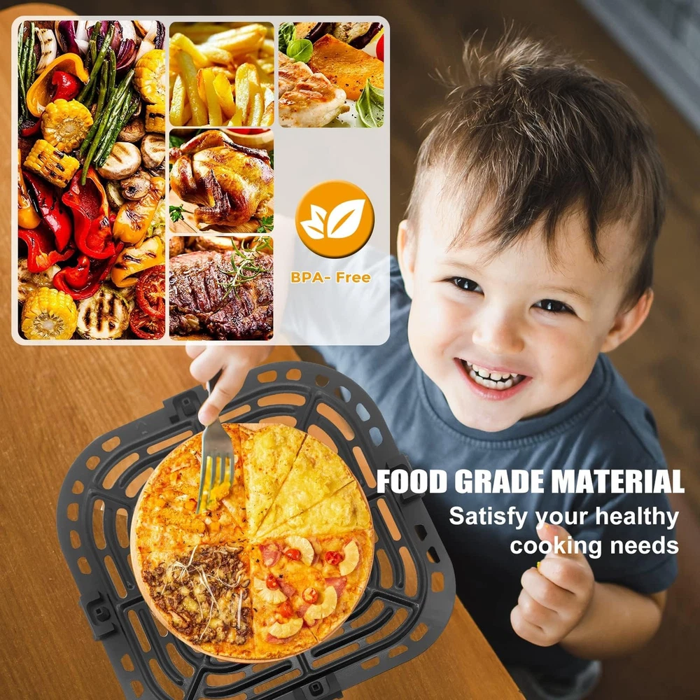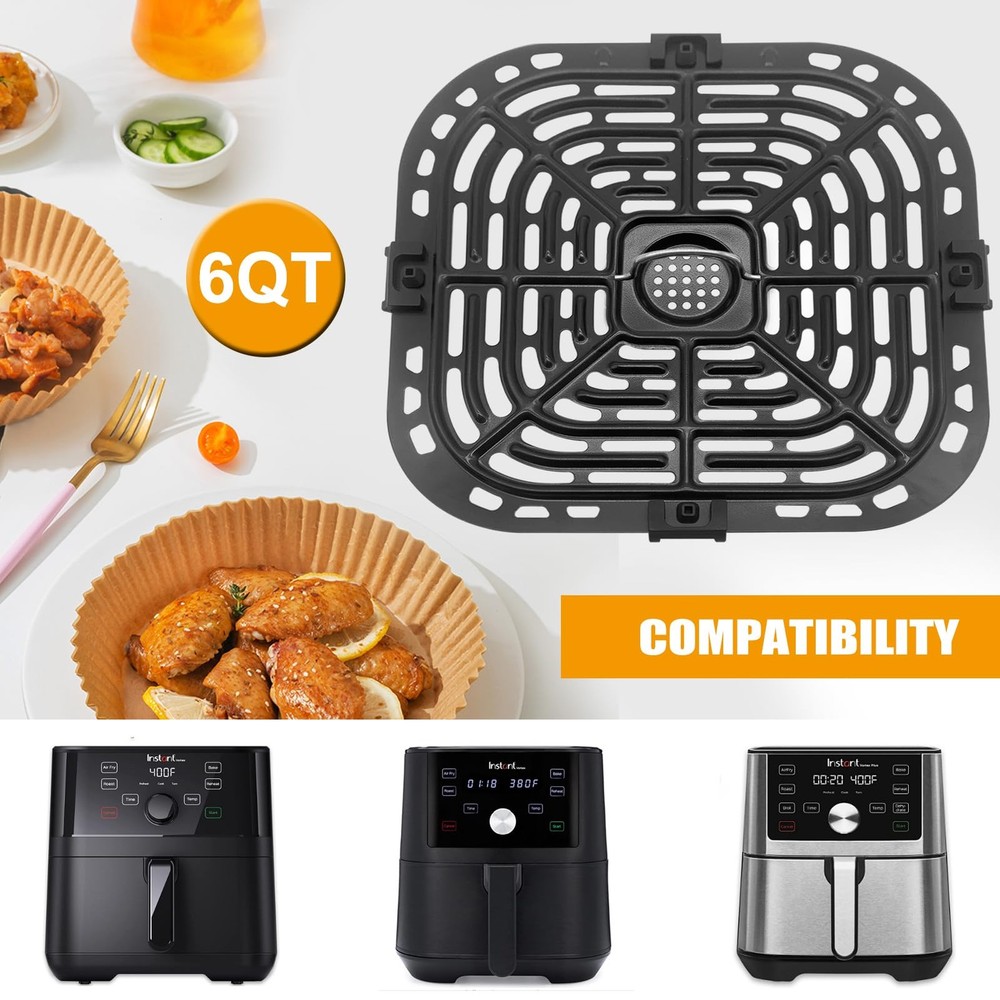 Design for Instant Vortex 5.7QT 6 Quart Gourmia GAF735 6 Quart Air Fryer, Nonstick Coating Crisper Plate, Air Fryer Replacement Grill Pan, Air Fryer Rack, Air Fryer Accessories. The best choice for home cooking. Why choose our Air Fryer Grill Pan? ->The non-stick crisper plate features a handle, which is easy to take out from the frying basket. ->Food Grade Material: Enjoy healthy cooking with food grade materials,do not worry about any hazardous chemicals. ->Features airflow design,food is more evenly heated and delicious. ->Stainless steel and nonstick coating,durable and easy to remove food. Idea for making pizza, french fries, steak, chicken wings and fried vegetables multiple foods.easy to clean by dishwasher.meeting your air frying needs. Specifications Material: stainless steel Size: W 23,1 x L 24,1 x H 0.01 cm / 9.1 x 9.5 x 0.01 in" Color: Black Package Including 1 × Air fryer Grill Pan 4 × Air Fryer Rubber Bumpers Warm Tips: 1.Please make sure the original pan is the same size as ours before place an order! 2.Please use the magic cloth in the bag to clean! Do not rub Air fryer replacement grill pan with rough abrasive cloth or metal balls to avoid damage to the anti-stick coating coating. 3.The replacement crisper plate can put in dishwasher to clean, Do not clean the Air Fryer Rack when it is too hot! Air Fryer Grill Plate: This air fryer replacement Crisper Plate made of food grade stainless steel. No BPA, non-toxic and tasteless, meets FDA standards. The best choice for enjoying healthy and safe cooking Exquisite Design: The Air Fryer Replacement Tray features airflow design, food is more evenly heated and delicious. It easy to take off from frying basket and wash in dishwasher by the handle in middle. 4 Rubber Bumpers can protect the inner wall of air fryer from scratches effectively Compatibility: This air fryer grill plate measures 9.1 x 9.5 x 0.01 inches. Perfect fit for Instant Pot Vortex Plus 6QTXL air fryer (6-in-1) Instant Pot Vortex 6QT XL air fryer (4-in-1) Instant Pot Vortex 5.7QT air fryer (4-in-1). Not Compatible with Instant Pot Vortex Plus 6QT ClearCook air fryer Instant Vortex Plus 6QT air fryer with Odor Erase Technology (6-in-1) Multiple use: Perfect for cooking barbecue, steak, vegetables, fish, french fries ,pizza, beef, chicken wings, onion rings, fries, or dehydrate fruits, chicken wings multiple foods in the air fryer. The surface of the air fryer accessories is teflon non-stick coating, easy to clean by dishwasher, solve tedious cleaning problems easily Package Include: 1× Air Fryer Grill Plate, 4× Air Fryer Rubber Bumpers. Note:Please measure the size of your air fryer before placing an order