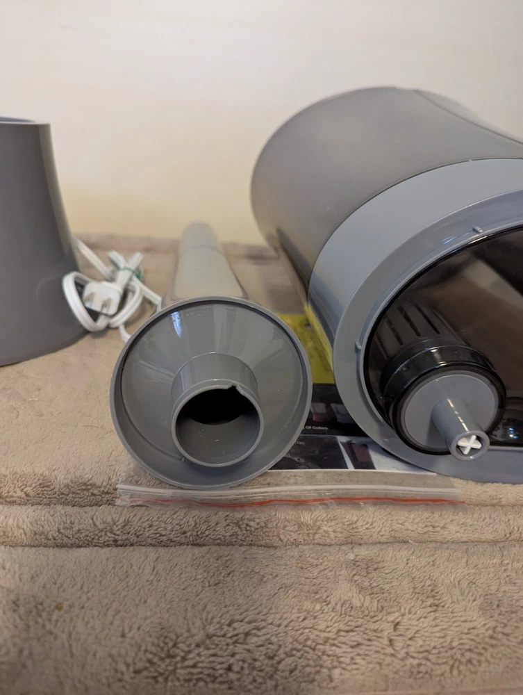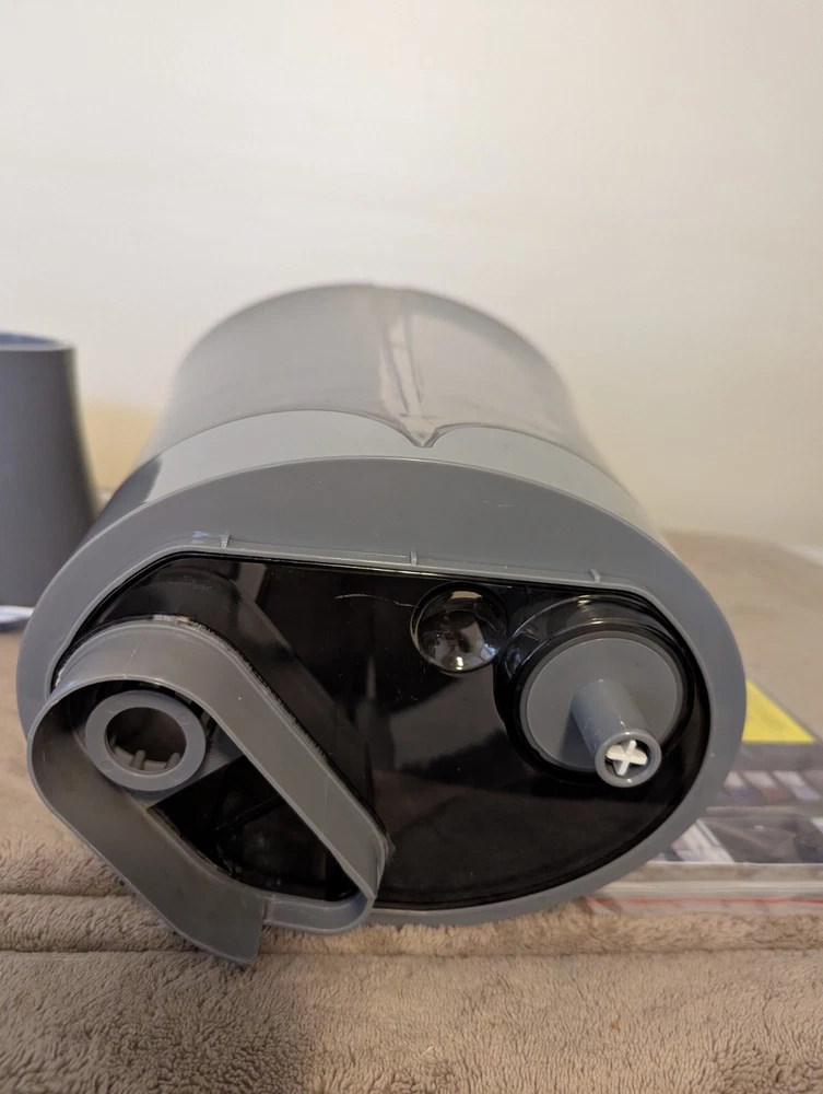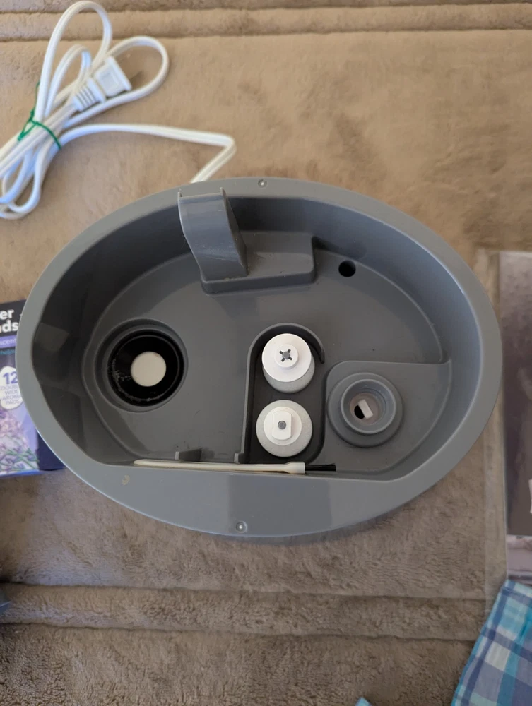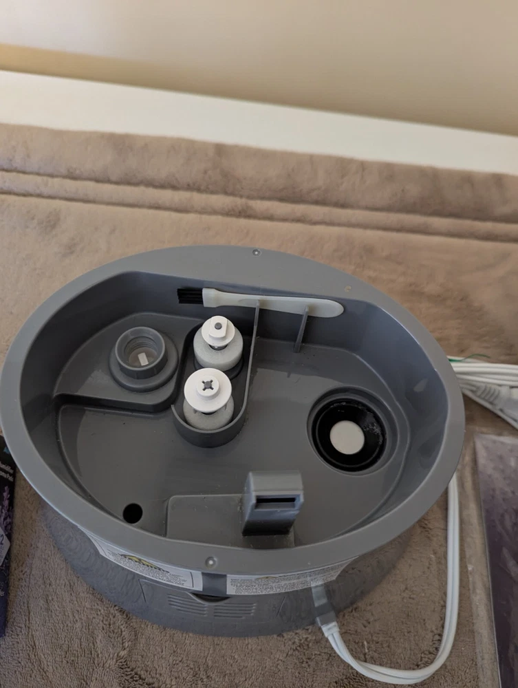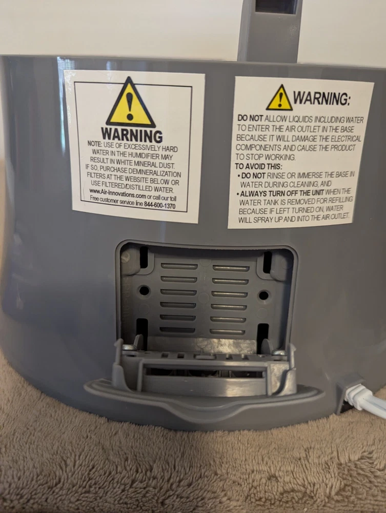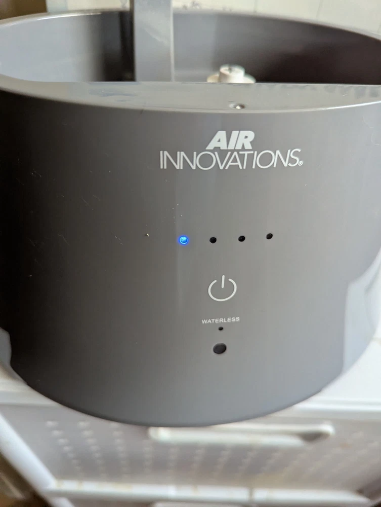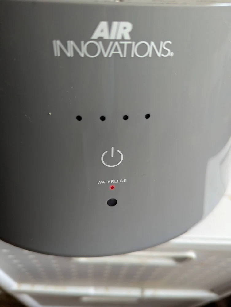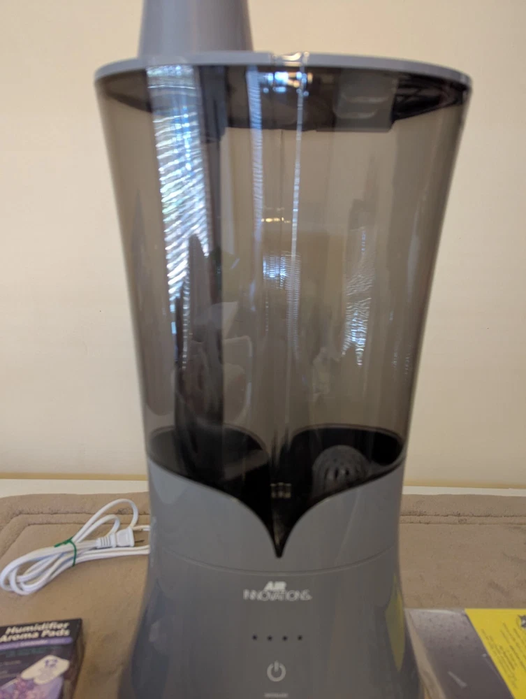 Air Innovations Clean Mist Top-fill Sensatouch humidifier and Aroma tray MH-903XL used no remote tested.and working properly. Pictures showing it operating and also when it senses no water in reservoir (pictures 2 and 3). Despite having no remote you can touch the sensor to manually adjust the speed. I used it once and then moved and have no use for it in my new home. Including in the purchase is the box of 11 lavender essential oil aroma therapy inserts-used 1. It can be used on the tabletop or floor and will run without needing to be refilled for up to 15 days on the low setting since the tank holds 2 gallons per manufacturer. The notch at the bottom of the wand is where it inserts into the cannister and is not a chip or damage (picture 16 and 17). Well cared for . I would also encourage you to use distilled or filtered water since manufacturer says this will prevent hard water staining. Includes the instruction manual as well. Packaged with care. Questions, please don't hesitate to ask. Thank you.