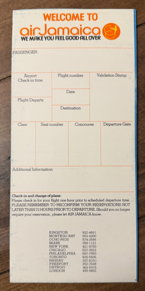 Up for bidding is an Air Jamaica vintage ticket holder.