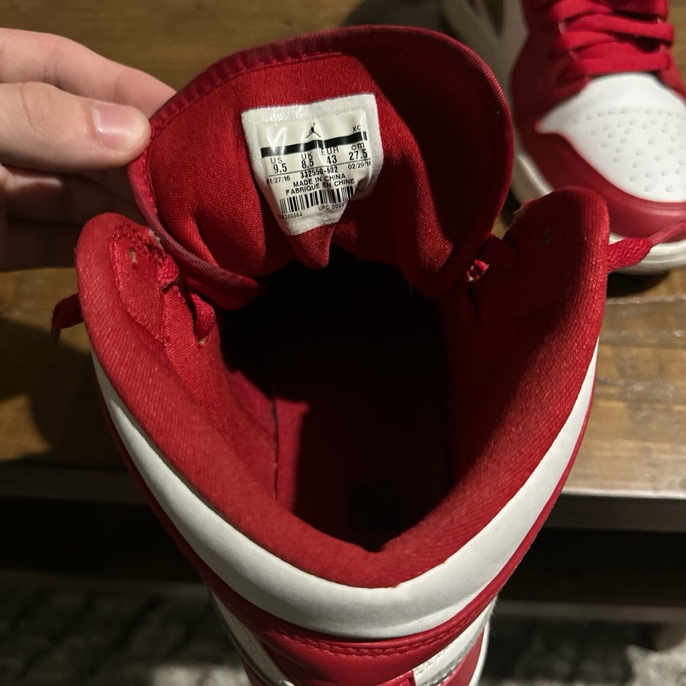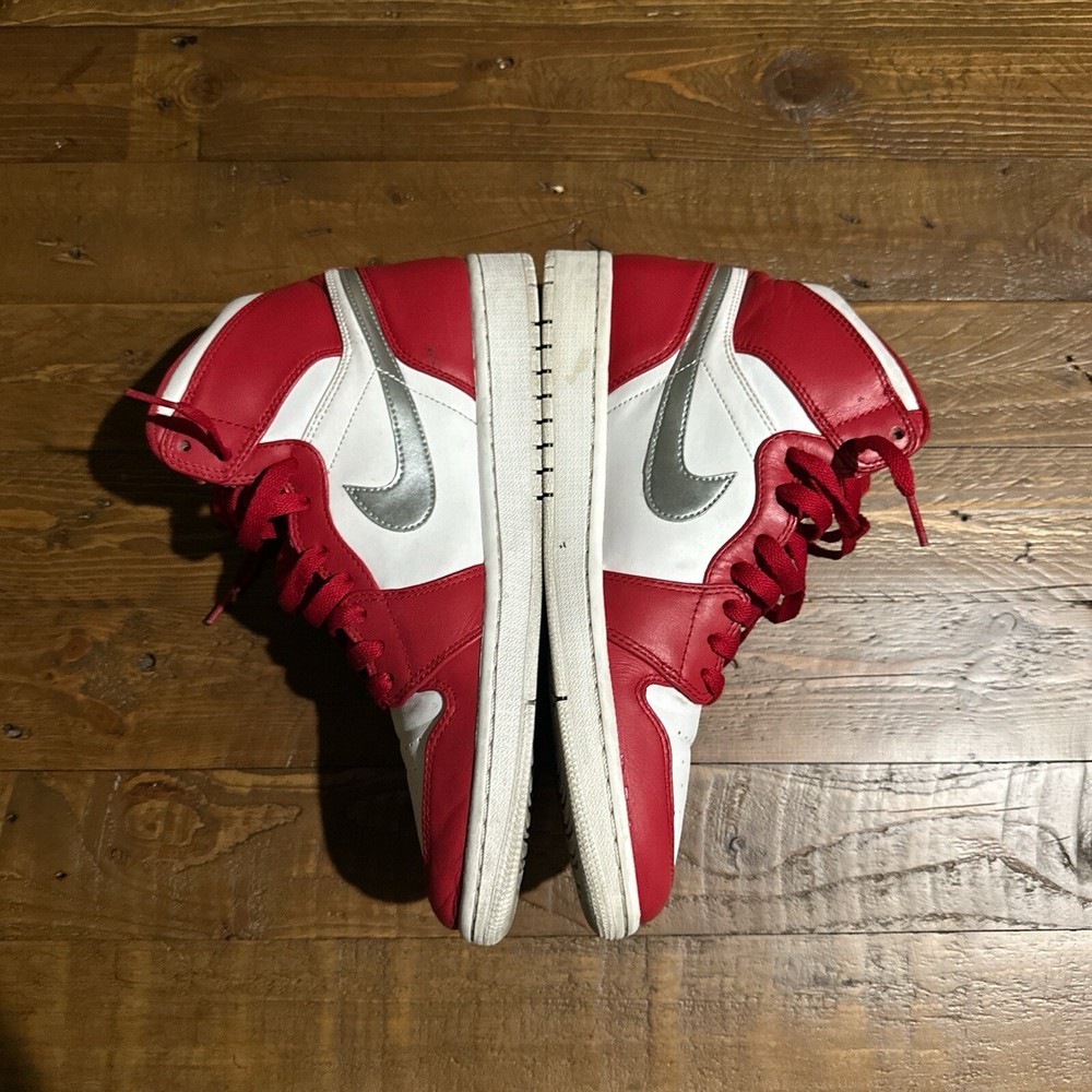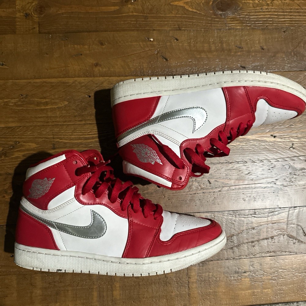 Elevate your sneaker game with the iconic Air Jordan 1 Retro High 'Silver Medal' from 2016, featuring a striking red hue that commands attention. With a size 9.5 US, these kicks are designed for a comfortable and secure fit, perfect for those with an active lifestyle. The sneaker's high-top design and leather upper ensure durability and support, whether you're hitting the court or the streets. This particular pair boasts the esteemed 'Silver Medal' silhouette, reflective of its limited edition status. They come equipped with a range of features including breathability, cushioning, and a reflective finish, ensuring both style and performance. Despite being vintage, these sneakers maintain their edge with a modern feel, ready to complement your every step, jump, and stride.