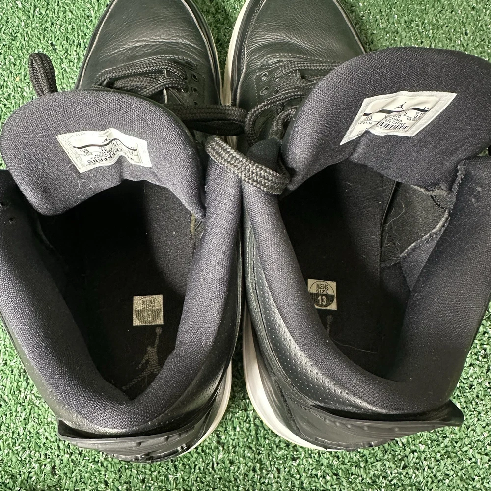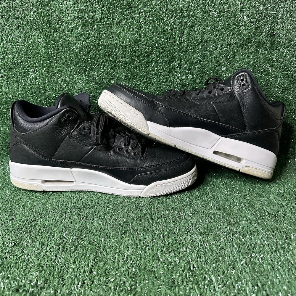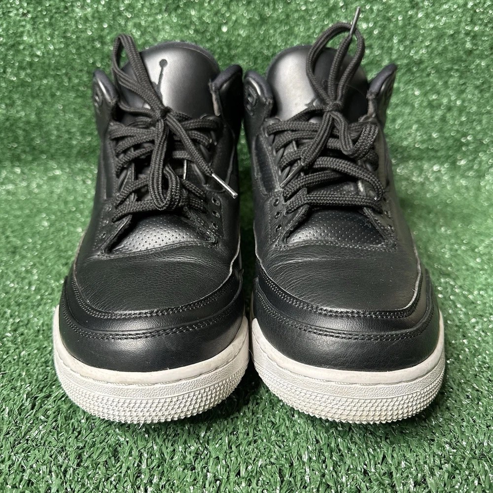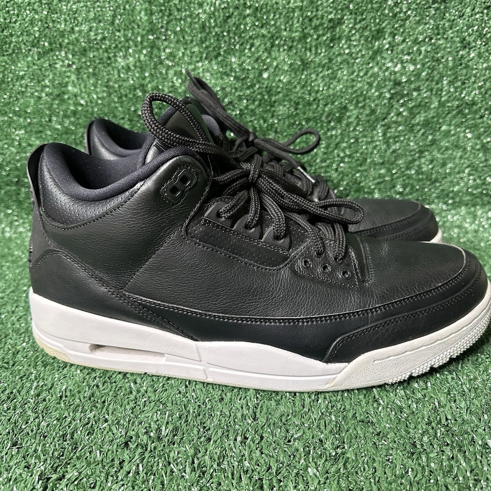 The Air Jordan 3 Retro Cyber Monday Men's Size 13 is a stylish and iconic sneaker with a retro theme, featuring a black colorway with black and white accents. This athletic shoe is part of the Air Jordan product line and is designed for performance in basketball. The shoe's upper material is leather, providing durability and a premium feel. With a release year of 2016, this sneaker is a sought-after collectible for fans of the Jordan brand.