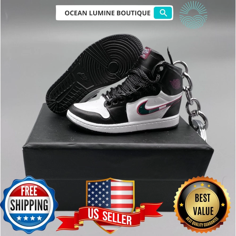 PLEASE READ BEFORE YOU PURCHASE You get the style in the very first pic, if you searching for more styles plz visit my page This is the best quality you can get, many other cheaper ones have poor quality, I know all the factories trust me, some really be making crap and you can not tell from the pictures. Handcrafted and hand-painted 3D Mini Sneaker Keychains inspired some of the most coveted sneakers ever produced Materials as ABS Plastic (Soft Plastic) Jordan pin color will be given randomly (If chosen) All Shoe keychain size is about 2 1/2 (L) x 1" (W) x 2" (H) The shoe Tongue is movable, it is not cracked or broken. Random shoe box styles will be given, if you have a preference please get in touch with me. These are all handmade and hand-painted with better paint, if you want to find a lower price please seek lower quality, my key chains are the best quality you can find. We've been selling these key chains for 3+ years, and have the most styles & best quality with super fast shipping. Search OCEAN LUMINE BOUTIQUE on any search engine to visit us! CLICK ME FOR MORE STYLES Disclaimer Product packaging, specifications, and prices are subject to change without notice. All information about the products is provided for information purposes only. Please always read labels, warnings, and directions provided with the product before use. Shipping We will ship all orders within 2 business days of payment, we provide free upgrade USPS shipping service up to 2-DAY Priority if Urgent Contact We can be contacted at any time through eBay messages if you have any questions, comments or product requests. We will respond to you within 24 hours and do our best to help you out! Features and further details 3000+ keychains in stock with up to 400+ styles We do bulk orders with discounts and provide long-term business relationships More styles are available in my shop PP WORLD