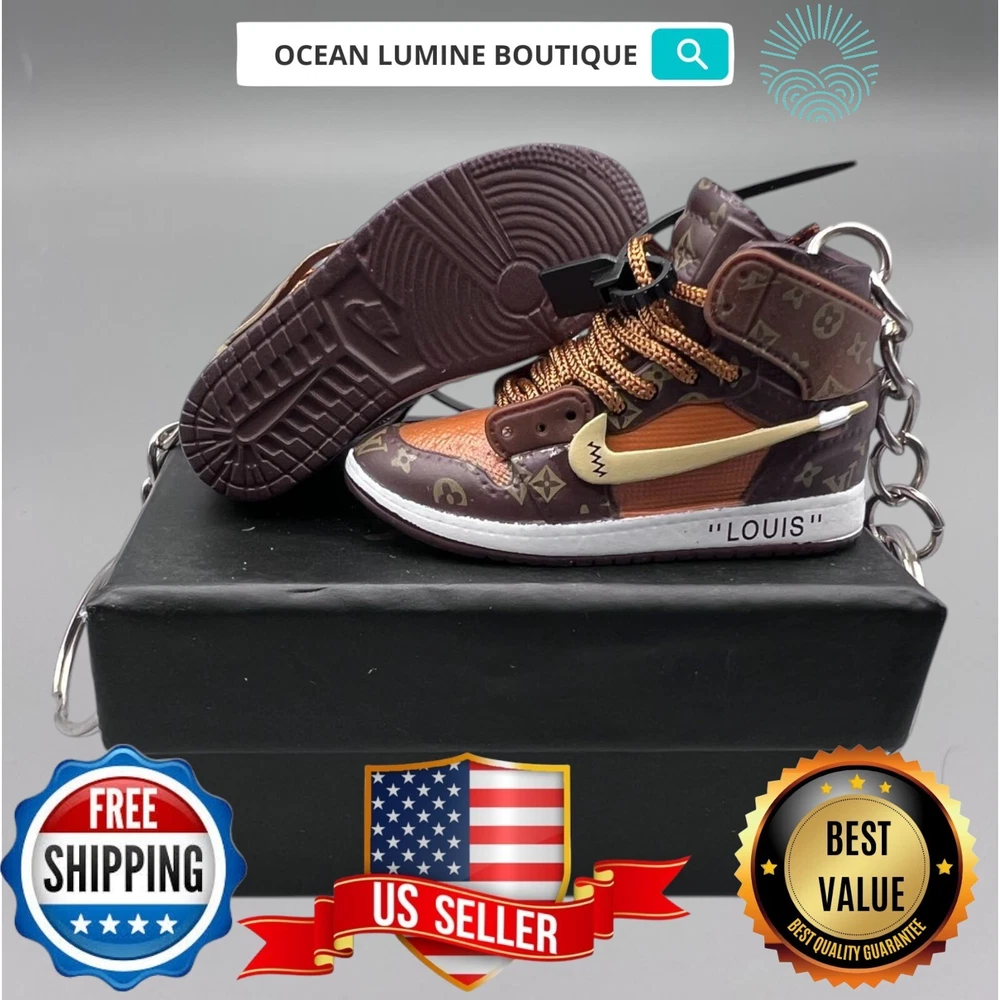 PLEASE READ BEFORE YOU PURCHASE This is the best quality you can get, many other cheaper ones have poor quality, I know all the factories trust me, some really be making crap and you can not tell from the pictures. Handcrafted and hand-painted 3D Mini Sneaker Keychains inspired some of the most coveted sneakers ever produced Materials as ABS Plastic (Soft Plastic) Jordan pin color will be given randomly (If chosen) All Shoe keychain size is about 2 1/2 (L) x 1" (W) x 2" (H) The shoe Tongue is movable, it is not cracked or broken. Random shoe box styles will be given, if you have a preference please get in touch with me. These are all handmade and hand-painted with better paint, if you want to find a lower price please seek lower quality, my key chains are the best quality you can find. We've been selling these key chains for 3+ years, and have the most styles & best quality with super fast shipping. Search OCEAN LUMINE BOUTIQUE on any search engine to visit us! CLICK ME FOR MORE STYLES Disclaimer Product packaging, specifications, and prices are subject to change without notice. All information about the products is provided for information purposes only. Please always read labels, warnings, and directions provided with the product before use. Shipping We will ship all orders within 2 business days of payment, we provide free upgrade USPS shipping service up to 2-DAY Priority if Urgent Contact We can be contacted at any time through eBay messages if you have any questions, comments or product requests. We will respond to you within 24 hours and do our best to help you out! Features and further details 3000+ keychains in stock with up to 400+ styles We do bulk orders with discounts and provide long-term business relationships More styles are available in my shop PP WORLD