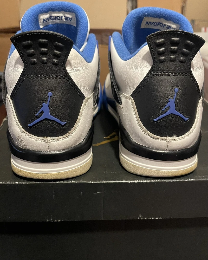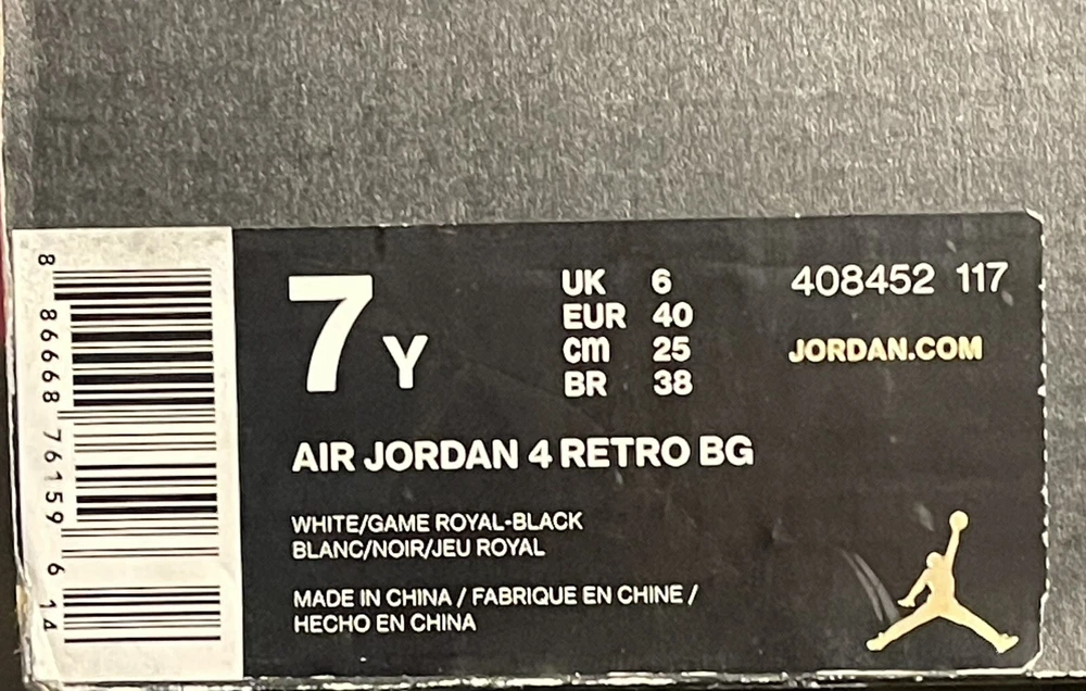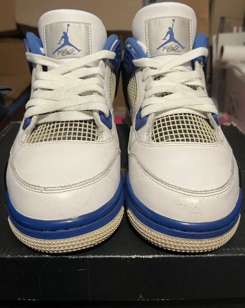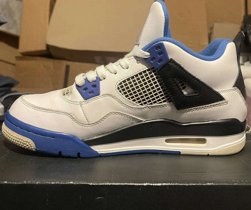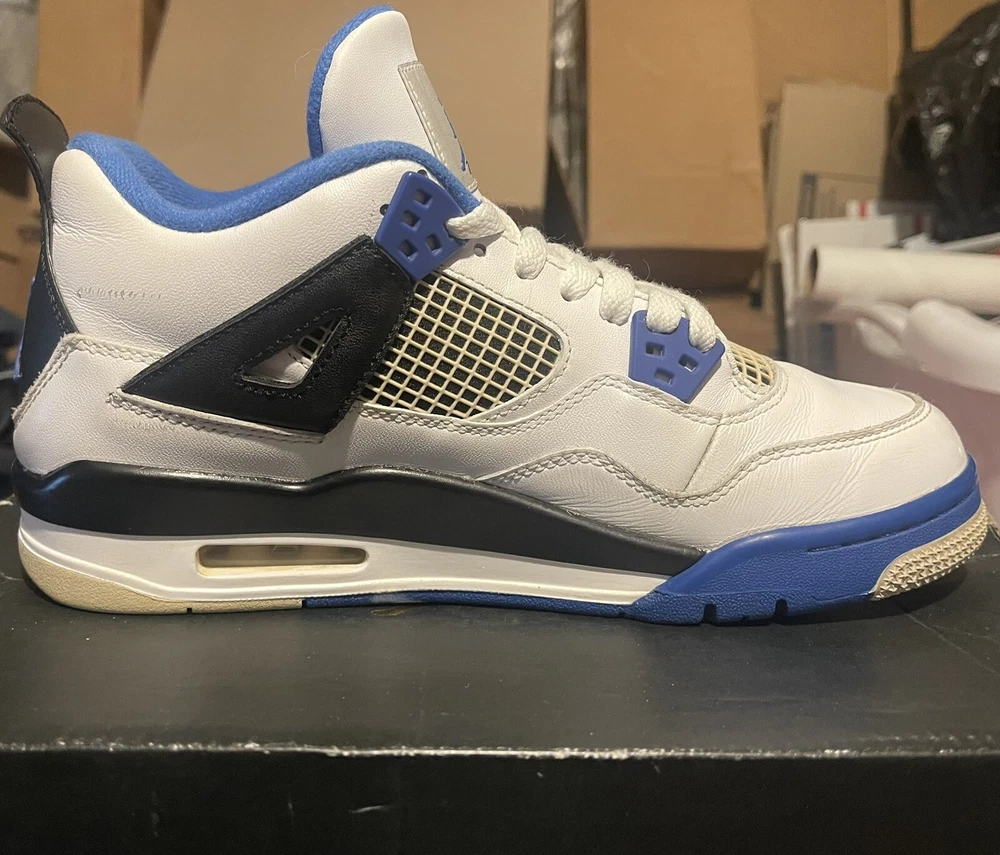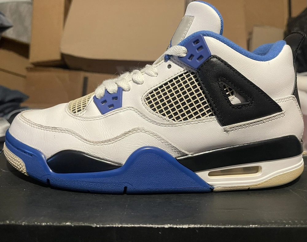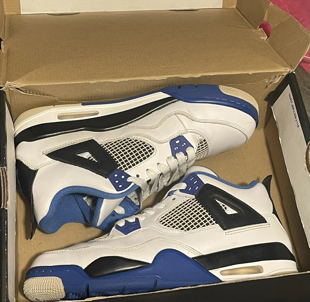 Air Jordan 4 Retro Motorsports Boys ( Size 4Y ) White Black Blue Motor Sport Pre-Owned and come with the box.