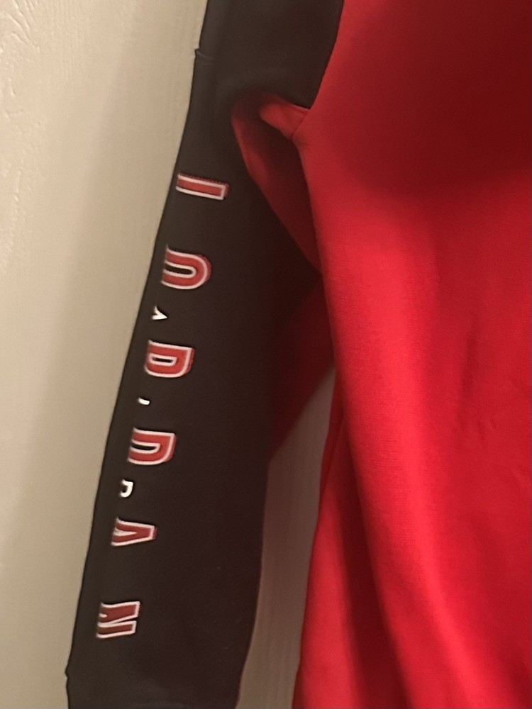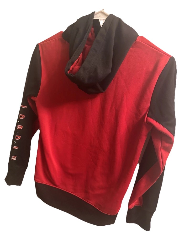 This Air Jordan fleece hoody in size medium is a stylish and cozy addition to any youth's wardrobe. Made from comfortable cotton fleece material, this long-sleeved hoodie features a crew neck and a hood for added warmth. With a classic pullover style and a colorful Jordan design, this hoodie is perfect for basketball enthusiasts and sports fans alike. Machine washable and suitable for winter, fall, and spring seasons, this hoody is a must-have for those looking for a fashionable and functional outerwear option. Great as a Christmas gift!!!!!