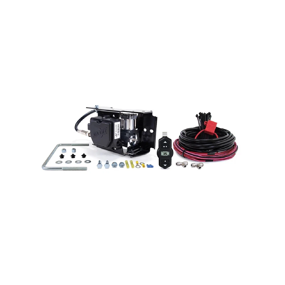 $ImageURL1$ Air Lift LoadLifter Air Springs & WirelessOne Compressor for Ford F250 F350 F450 PART NUMBER: 88396 / 25980EZ BRAND: Air Lift DESCRIPTION LoadLifter 5000 Ultimate Air Spring Kit All the goodies of the LoadLifter 5000 air spring kit with an internal jounce bumper inside - giving you the ultimate in lift, ride comfort, and safety. It eliminates harsh jarring on rough roads, provides three-stage ride comfort, replaces factory jounce bumper and it's maintenance-free! Safely run with zero air pressure. The kit includes all the necessary mouting brackets, all of the hardware needed for installation, internal jounce bumper prevents damage when driving with an empty air bag, 2 air springs, air lines, schrader valve and fully-illustrated installation guide. Features Internal jounce bumper prevents damage when driving with an empty air bag, so you can operate safely at 0 PSI Exclusive Air Lift air spring kit Up to 5,000 lbs. of load-leveling capacity Three-stage ride comfort, absorbing shock and vibrations from rough roads and uneven terrain Fitment Notes 2011-2016 Ford F-250 Super Duty 4WD 2011-2016 Ford F-350 Super Duty 4WD 2011-2014 Ford F-450 Super Duty 4WD (Non Commercial Chassis) Fits single rear wheel (SRW) and dual rear wheel (DRW) models. Will fit ALL models without a fifth-wheel hitch and will also fit most side mount fifth wheel hitch applications. Does not fit cab & chassis applications. Fits factory in-bed hitch system. Does not fit Commercial Chassis. WirelessOne Manifold & Compressor w/ EZ Mount WirelessOne is a single-path, wireless control system including a standard-duty compressor. Air springs are controlled with the wireless controller or a compatible smartphone, and our free app is programmable with up to three user-defined presets. WirelessOne + EZ Mount features our EZ Mount, allowing for a cleaner, quicker install. WirelessOne Tank + EZ Mount has a 2-gallon auxiliary air tank for quicker air spring inflation and less compressor cycling. Features Works with most brands and styles of air springs, including Air Lift System able to be controlled from included remote or the WirelessAir app Single-path control: Left and right air springs are inflated/deflated equally Easy installation - no air lines to the cab Includes EZ Mount installation bracket with upgraded compressor
