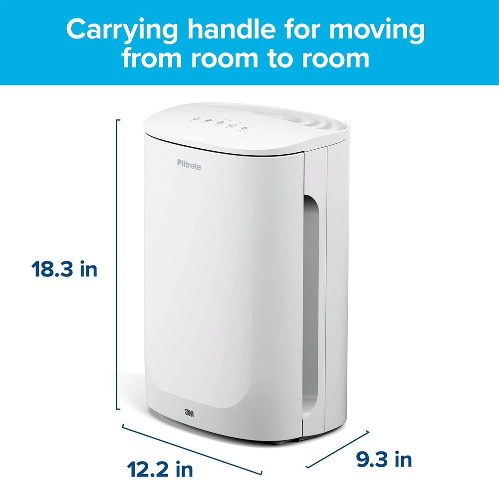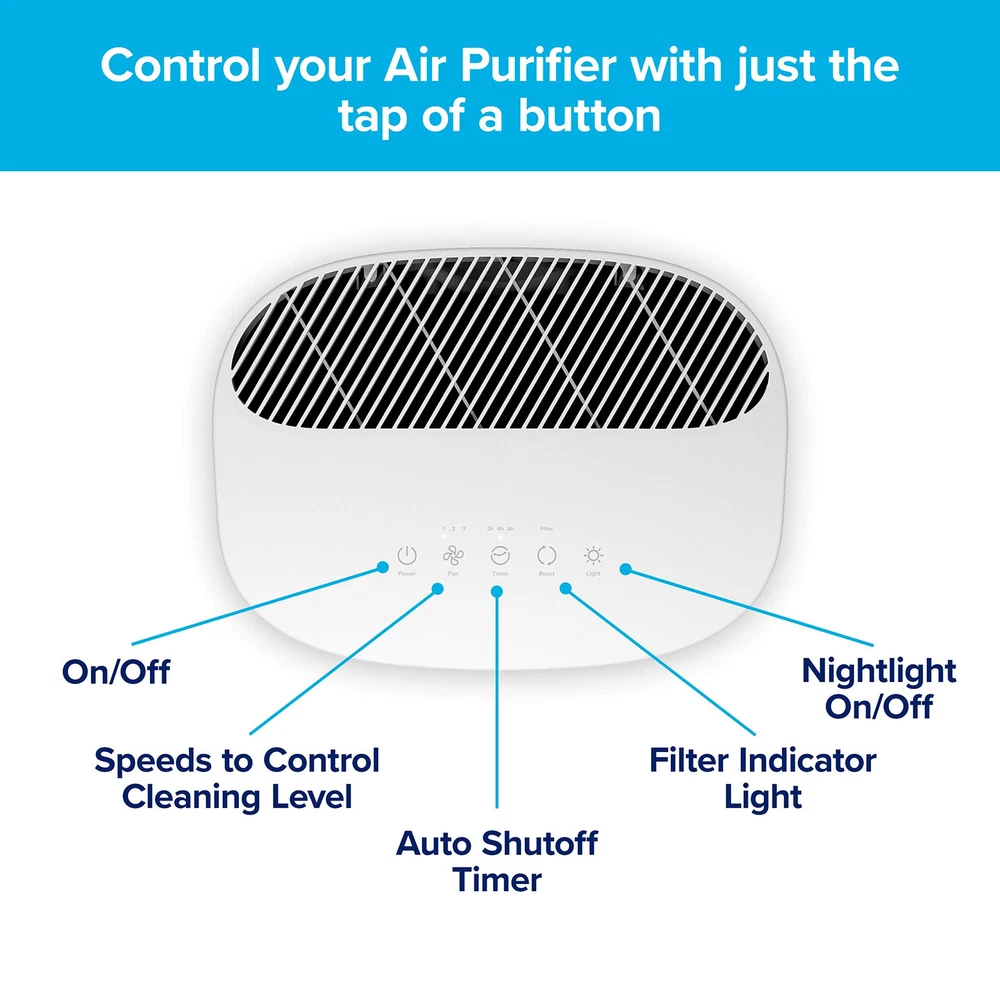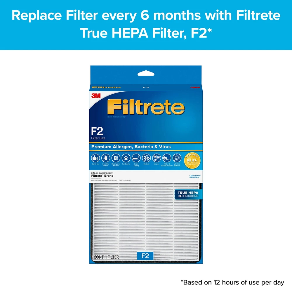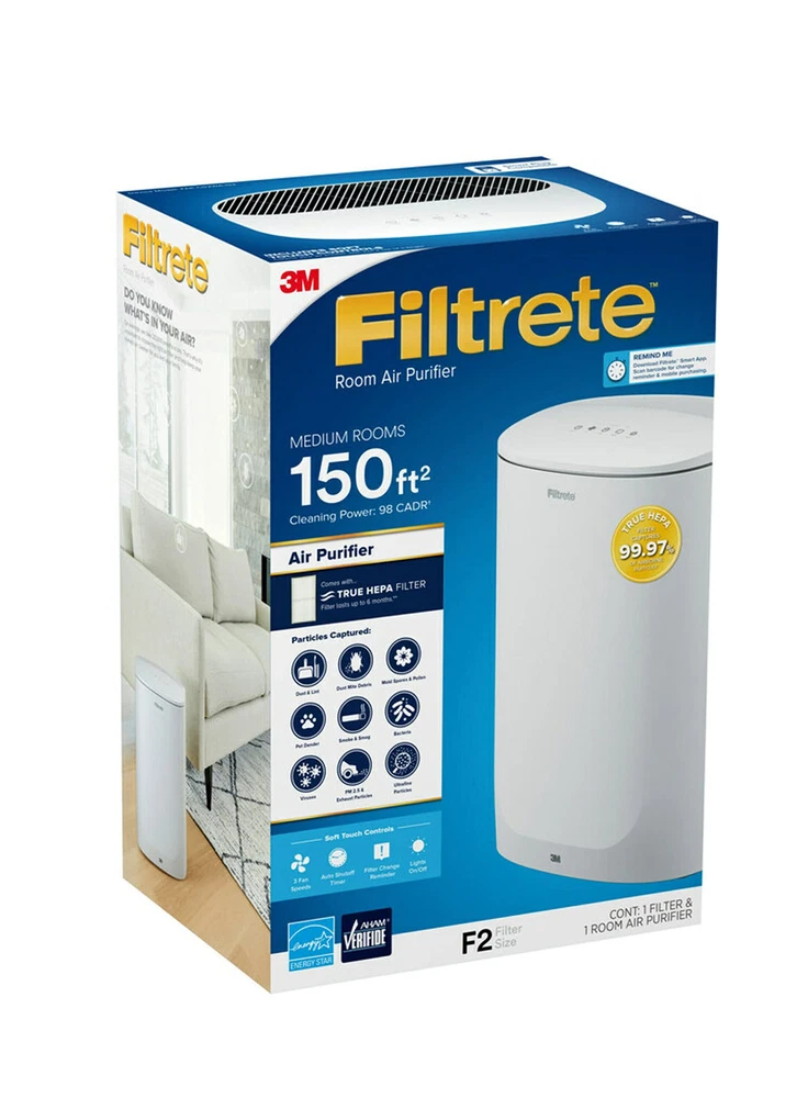 Cleaner indoor air can be yours—even if you don’t have an HVAC system. The Room Air Purifier device and its filter help reduce airborne particles in the air you breathe. This stand alone unit works well in medium sized rooms and includes a True HEPA Filter that captures 99.97% of particles you can’t see, such as mold spores, pollen, pet dander and more* (*Disclaimer: As small as 0.3 microns from the air passing through the filter media. Initial efficiency value) CLEANER AIR CAN BE YOURS; The Air Purifier device and its filter help reduce airborne particles in the air you breathe INCLUDES A TRUE HEPA FILTER that captures 99.97% of airborne particles you can’t see (Disclaimer: As small as 0.3 microns from the air passing through the filter media. Initial efficiency value) PARTICLES CAPTURED include dust, lint, dust mite debris, mold spores, pollen, pet dander, smoke, smog, bacteria, viruses, PM 2.5, exhaust particles, and ultrafine particles CLEANS MEDIUM ROOMS up to 150 square feet with a smoke Clean Air Delivery Rate of 107 CADR BUILT IN ELECTRONIC FILTER CHANGE INDICATOR on the control panel will turn on when a new filter is needed so you never miss a filter change SOFT TOUCH CONTROLS help you easily change fan speeds, set a run timer, dim the control panel lights, and reset the filter change indicator REPLACE YOUR FILTER EVERY 6 MONTHS with the Premium Allergen, Bacteria & Virus True HEPA replacement filter, F2 size (Disclaimer: Based on 12 hours of use per day) FOR RESIDENTIAL use only knows your home filtration needs are as unique as you are, that’s why we’ve designed a family of room air purifier filters and devices to fit your lifestyle - from small to large rooms; True HEPA, to Odor Reduction - has you covered