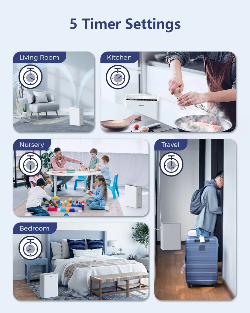 [High Efficiency Air Purifiers] Breathe in the fresh air with large room air purifiers that cover an area up to 2200 sq.ft in just 1 hour. Home air purifiers refresh the air 5x per hour, and feature a powerful 3-stage filtration system consisting of a pre-filter, HEPA filter, and activated carbon filter. [Fragrance Sponge & Washable filter cover] The top of the air purifier is equipped with an essential oil cotton pad, you can drop your favorite essential oil, which can help you sleep or refresh yourself. The washable filter cover can be washed directly with water. [3-Fan & 5 Timers] Air purifier offers three gears of air flow for you to choose from - low, medium, and high. Not sure which fan to choose? Air Purifier Auto Mode can automatically adjust fan based on real air quality. 5 timer options (2/4/6/8/12H) are convenient for your life. [Air Quality Display] Smart air purifiers feature a built-in air quality sensor that displays real PM2.5 levels on the air purifiers display screen. Enjoy peaceful and undisturbed moments with our ultra quiet air purifier. The lowest working noise is ≤15dB, it ensures a serene environment for your home [Filter Reminder] Air purifier has a filter replacement reminder function. When the filter reaches its service life, the FILTER will light up red and flash to remind you that needs to be replaced. Just press and hold the "FILTER" button for 3-5 seconds, and the red flashing will disappear. Power Source: Corded Electric Working voltage of purifier: 120V