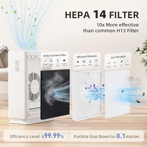 Air Purifiers for Home Large Room, HEPA14 Filter Air Purifier with Air Quality