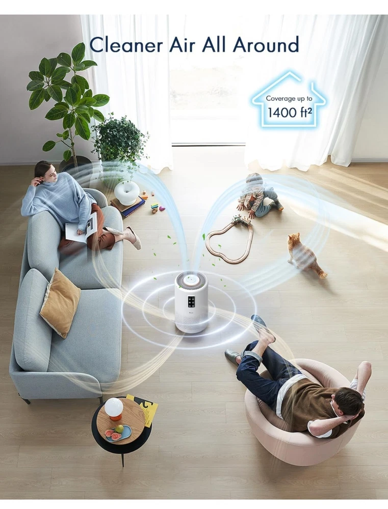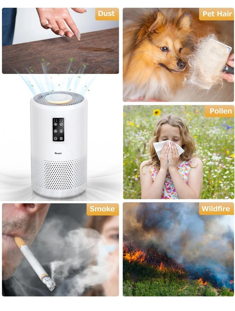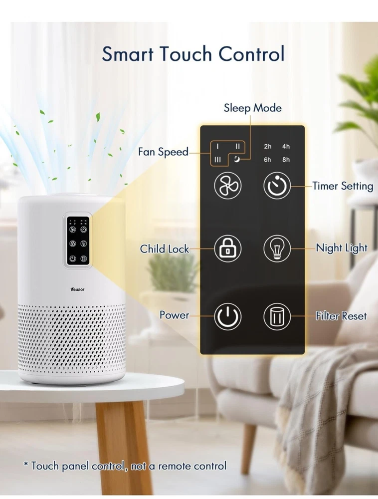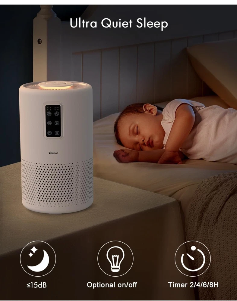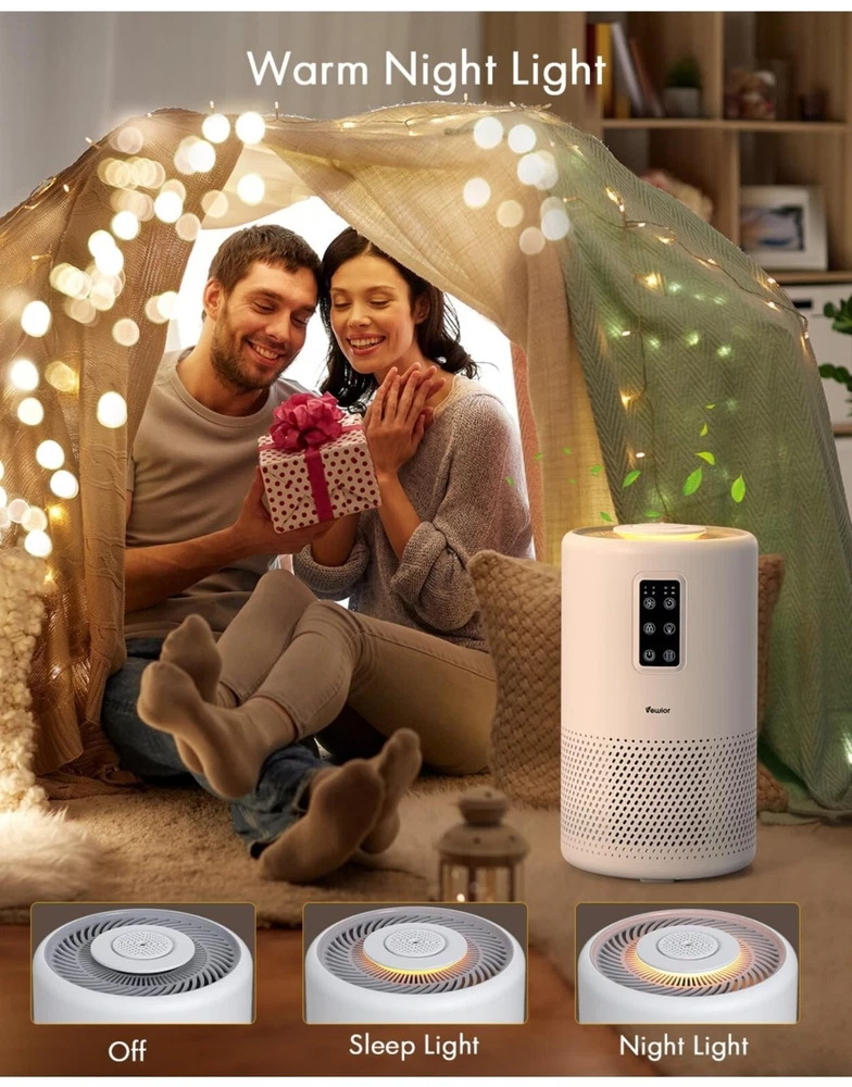 Keep your home environment clean and healthy with the VEWIOR Air Purifier. This powerful device is designed to clean the air in your home, making it suitable for large rooms up to 1076ft². With its H13 True HEPA filter, it captures 99.97% of airborne particles, including pollen, dust, and smoke. The sleek white design of this air purifier fits perfectly into any home decor. It is easy to use and maintain, making it a great addition to your home. Say goodbye to dirty and unhealthy air and hello to clean and fresh air with the VEWIOR Air Purifier.