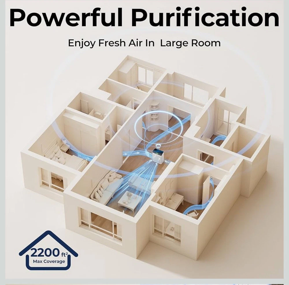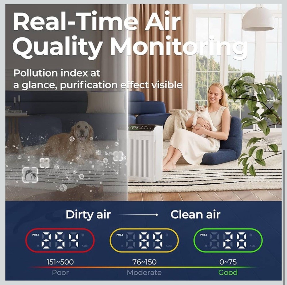Air Purifiers for Home Large Room up to 2200sq.ft with Washable Filters, EVALIT Air Purifier for Bedroom with Fragrance, PM 2.5 Display Air Quality Sensor for Smoke Dust Odors, White, 1Pack+3Modes