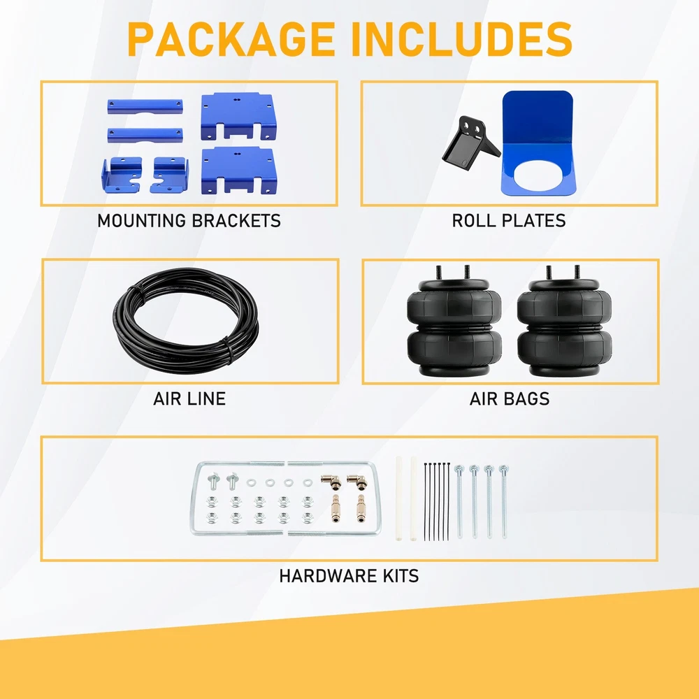 eBay Air Spring Suspension Bags Kit for For Dodge Ram Pickup 1500 2WD 4WD 2002-2008 FEATURE Condition: Brand New Fully adjustable air springs to level your vehicle when towing or hauling a heavy load for a safe comfortable ride. Up to 5,000 pounds of load capability. Exclusive internal jounce bumper inside, springs absorb shock. Removing the jounce bumper before installation. Instructions Are Not Included, professional Installation is highly recommed. Package 2 x Air Springs, Air Lines, Schrader Valve, Mounting Bracket, Hardware. ( As pictures show ) Compatibility For Dodge Ram Pickup 1500 2WD/4WD 2002-2008 Returns and Exchanges Please Do Not click "Return this item" in any situation. Because sometimes it will spend more time to resolve the issue,pls contact us via ebay message that is the fastest way to solve any problem for you; All NON-Seller Mistake returns for refund are subject to 20% re-stocking fee and buyer should pay for the return shipping fee and handle fee.(For example,you brought wrong item or cancelled order after item was shipped); All return products should be in brand new state with all accessories included; Note: No returns or exchanges once product has been installed on the vehicle. Shipment We will ship all orders asap. from Texas via USPS or UPS.( No service on Weekend and public holidays); No pick-up service. Warranty and Feedback Customer satisfaction is very important to us and our feedback rating reflects this satisfaction. If you have any question or concern, please contact us via ebay message; We fully guarantee customers an exchange or refund within 30 business days of receipt if item DOA (damage on arrival); Warranty excludes normal product lifetime wear-out, wear and tear or abuse; Warranty does not apply to conditions resulting from misuse, abuse, negligence, accident, improper application, improper installation or alteration; For malfunction products under warranty period,please contact our customer service via EBay Message.