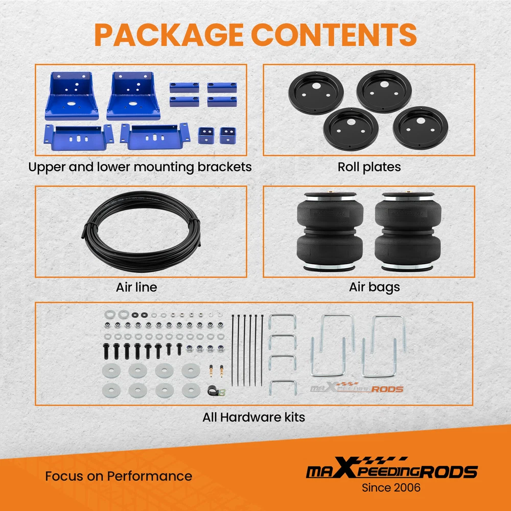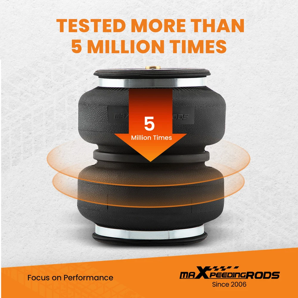 YRMAP Air Spring Suspension Kit For Ford F250 F350 Super Duty Pickup 2005-2010 Air Suspension Bags Kit maXpeedingrods Air Suspension Bags Kit Fitment For Ford F-250 SUPER DUTY PICKUP KING RANCH RWD/4WD 2005-2010 For Ford F-250 SUPER DUTY PICKUP KING LARIAT RWD/4WD 2005-2010 For Ford F-250 SUPER DUTY PICKUP KING XL RWD/4WD 2005-2010 For Ford F-250 SUPER DUTY PICKUP KING XLT RWD/4WD 2005-2010 For Ford F-350 SUPER DUTY PICKUP KING RANCH RWD/4WD 2005-2010 For Ford F-350 SUPER DUTY PICKUP KING LARIAT RWD/4WD 2005-2010 For Ford F-350 SUPER DUTY PICKUP KING XL RWD/4WD 2005-2010 For Ford F-350 SUPER DUTY PICKUP KING XLT RWD/4WD 2005-2010 For Ford F-250 SUPER DUTY PICKUP CABELAS 2009-2010 For Ford F-250 SUPER DUTY PICKUP FX4 2008-2009 For Ford F-250 SUPER DUTY PICKUP HARLEY-DAVIDSON EDITION 2005-2010 For Ford F-350 SUPER DUTY PICKUP CABELAS 2009-2010 For Ford F-350 SUPER DUTY PICKUP FX4 2008-2009 For Ford F-350 SUPER DUTY PICKUP HARLEY-DAVIDSON EDITION 2005-2010 Notice:Only fit for no bed hitch and some 5th wheel hitch model Package Includes 4x Upper and lower mounting brackets 4x Rolling plates Includes All Brackets & Hardware Needed to Install Features Restore the original ride height and improve ride quality Specifications Condition Brand New Internal Jounce Bumper include Yes Stroke 100 mm Placement on Vehicle Rear left and right Load capacity Up to 5000 LBS Minimum PSI 5 PSI Maximum PSI 100PSI Max. Extended 200mm Min. Compressed 100mm Features 1、Stress Test Over 5,000,000 Times:Durable and Safe 2、Burst Pressure≥2.0MPa:High Compressive Strength and Less Noise 3、24 Hours Air Tightness Test ≤ 0.02MPa:100% Air Tightness Guarantee 4、Temperature Range ≥ -40℃/ ≤ 70℃:Premium Natural Rubber Material 5、Use high-quality steel with high load-bearing capacity and long life. 6、Excellent and practical bolt-on installation. 7、Safe carrying capacity and stability 8、Restore the original ride height and improve ride quality 9、Ensure our driving comfort and reduce tire wear. maXpeedingrods Air Suspension Bags Kit Solves These Common Problems Other items you might also like Air Suspension Spring Bag Kit For GMC Silverado Sierra 1500 4WD 2019-24 Rear Air Suspension Spring Bag Kit 5000lbs For Dodge Ram 2500 3500 2003-2018 4WD Air Suspension Spring Kit 5000 lbs For GMC Sierra Chevrolet Silverado 1500 99-07 2x Cab Air Suspension Spring Bags for Peterbilt 379 W02-358-7036 29-03200 Rear Air Helper Spring Leveling Kit For Ford F250 F350 Super Duty 2005-2010 Air Suspension Spring Kit 5000lbs For Dodge Ram 1500 4 Wheel Drive 2019-24 Air Suspension Spring Kit For GMC Sierra 1500 Chevrolet 1500 4WD 2019-2024 Rear Air Spring Leveling Kit for Ford F250 F350 Super Duty Pickup 4WD RWD 99-07 Pair Rear Air Ride Suspension Shock for Chevrolet GMC Cadillac Escalade 25979393 Air Spring Bag Tow Assist Rear 5000lbs For GMC Sierra Chevrolet 1500 2007-2018 Air Suspension Spring Bag Kit Rear For F250 F350 Super Duty 2WD 4WD 2011-2016 Air Suspension Bag Kit 7500 lbs For Ford F250 F350 F450 Super Duty 4WD 2017-22 Shipping Terms of Sales Payment Contact us All orders will be shipped within 1 business day after payment has been processed. For orders placed before 5:30 AM PST on business days, most items will be shipped out on the same day. All orders will be shipped with a tracking number via USPS, UPS, or FedEx Express and delivered within 2-6 business days We do not ship to P.O. Boxes, APO/FPO addresses, or Military Mail Boxes. Please ensure your address is confirmed by PayPal before checkout, as we only ship to confirmed addresses. 30-day free return and money back guarantee If you are not satisfied with your purchase, you can return the item with its original packaging to us for a full refund with no restocking fee. Please note that the return cost should be paid by the seller. One Year Unlimited Mileage Quality Guarantee If you receive incorrect items, items that are damaged during transportation, or defective items, we will accept returns and cover the return freight. Please note that the return cost should be prepaid by the buyer. After inspecting the faulty item, we will issue a refund of the return cost to the buyer. We offer a full refund or replacement for all faulty items, which includes the cost of original shipping. Please contact us before initiating a return. Our representatives will provide you with detailed instructions on how to proceed. Our guarantee covers only the cost of the item. We are not responsible for installation or other fees, such as labor, towing, additional repairs, or related expenses. We only accept payment through Paypal for all orders, which should be made through eBay. Paypal offers various payment methods, including credit card, direct debit, VISA, and others. For more information, please visit Paypal. Our customer service center is open 24 hours a day, seven days a week. If you have any questions, please don't hesitate to contact us. We are dedicated to providing excellent customer service and will do everything we can to ensure your satisfaction.