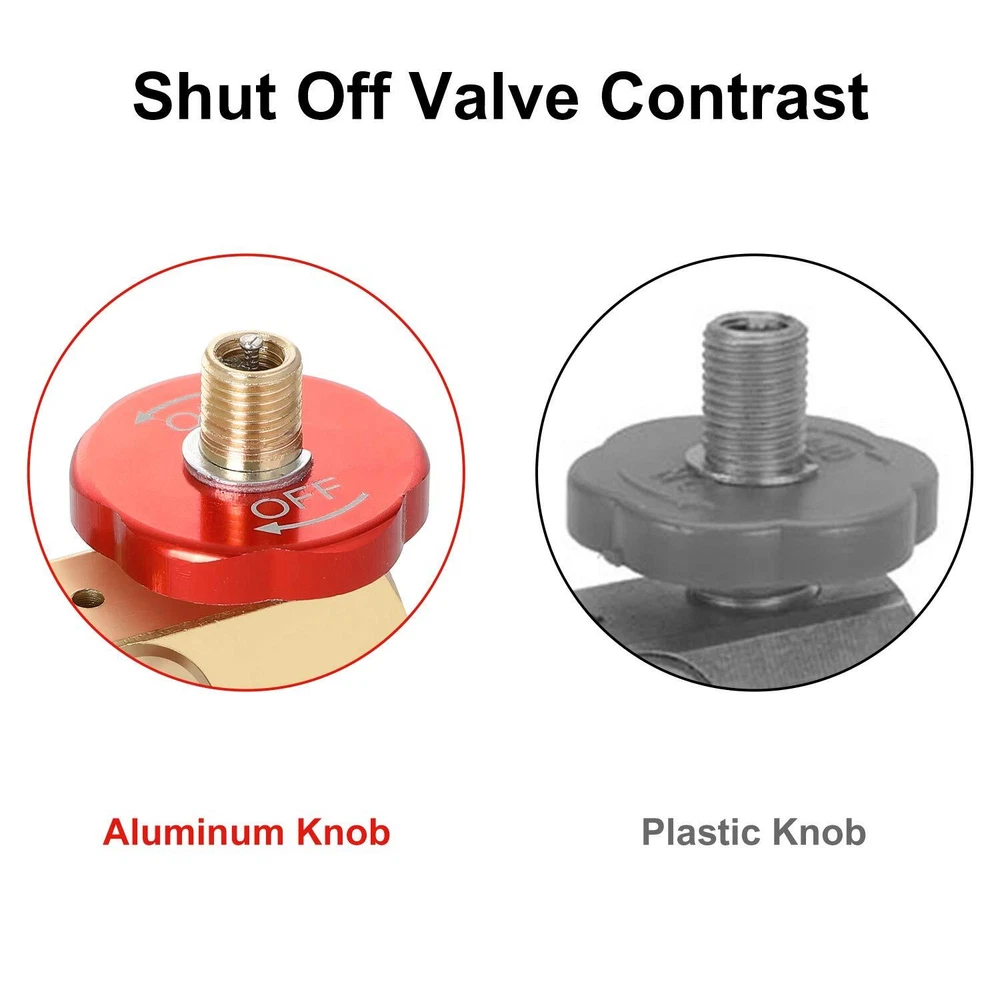 Air Tank Manifold Tool With Fill Port Aluminum Shut Off Safety Valve Portable Air Tank Replacement Manifold is a replacement brass manifold with 125-150PSI(±5%) pop-off air valve for tanks. The air tank end is 1/2" MNPT. The gauge port is 1/8" FNPT. The outlet (hose) port is 1/4" FNPT. The red knob connected to this valve allows you to easily turn on/off the air flow to the air hose. And prevent air from leaking out of the tank when it's not in use. The material aluminum is much durable than the plastic one and guarantee long time use. Except the aluminum knob, the whole body is brass construction and the spring is stainless steel. Both of them are corrosion resistant. A schrader tire fill valve on the side for filling the air bubble. The safety relief valve ring is on the side and with manual override. Hromee air tank manifold holds pressure inside air carry tank steady. Keeps carry tank working at optimal performance, fits for most portable carry air tank. Shipping We offer FREE shipping on all orders! We ship within Three business days of payment, usually sooner. We use a selection of shipping services such as UPS, FedEx, USPS etc. We only ship to the lower 48 states, no APO/FPO addresses or PO Boxes allowed. Local pickups and combined shipping options are not provided at this time. Return You can return a product for up to 30 days from the date you purchased it. Any product you return must be in the same condition you received it and in the original packaging. Please keep the receipt. Payment We accept payment by any of the following methods: PayPal Please pay as soon as possible after winning an auction, as that will allow us to post your item to you sooner! Feedback Customer satisfaction is very important to us. If you have any problem with your order, please contact us and we will do our best to make you satisfied. Contact Us If you have any queries, please contact us via ebay. We usually respond within 24 hours on weekdays. Please visit our eBay store to check out other items for sale! Thank you for shopping at our store.