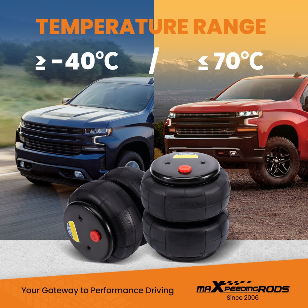YRMAP Air Tow Assist Rear Bag Kit for GMC Sierra for Chevy Silverado 1500 1999-2006 Air Suspension Bags Kit maXpeedingrods Air Suspension Bags Kit Fitment for Chevrolet Silverado 1500 1999-2006 2WD &4WD for GMC Sierra 1500 1999-2006 2WD &4WD (Will Not Fit Trucks With Rear Sway Bar) Package Includes 2 x Standard 2500lbs Air Spring Bags 2 x Upper Bracket Mounts 2 x Lower Mounts Top Of Axle 2 x Under Axle Brackets Mounting Brackets Hardware Air Line With Fittings And Valve Features 1、Stress Test Over 5,000,000 Times:Durable and Safe 2、Burst Pressure≥2.0MPa:High Compressive Strength and Less Noise 3、24 Hours Air Tightness Test ≤ 0.02MPa:100% Air Tightness Guarantee 4、Temperature Range ≥ -40℃/ ≤ 70℃:Premium Natural Rubber Material 5、Use high-quality steel with high load-bearing capacity and long life. 6、Excellent and practical bolt-on installation. 7、Safe carrying capacity and stability 8、Restore the original ride height and improve ride quality 9、Ensure our driving comfort and reduce tire wear. Specifications Condition Brand New Internal Jounce Bumper include No Stroke 135 mm Placement on Vehicle Rear left and right Load capacity 2500LBS Material Cured Natural rubber maXpeedingrods Air Suspension Bags Kit Solves These Common Problems Other items you might also like Air Suspension Spring Bag Kit For GMC Silverado Sierra 1500 4WD 2019-24 Rear Air Suspension Spring Bag Kit 5000lbs For Dodge Ram 2500 3500 2003-2018 4WD Air Suspension Spring Kit 5000 lbs For GMC Sierra Chevrolet Silverado 1500 99-07 2x Cab Air Suspension Spring Bags for Peterbilt 379 W02-358-7036 29-03200 Rear Air Helper Spring Leveling Kit For Ford F250 F350 Super Duty 2005-2010 Air Suspension Spring Kit 5000lbs For Dodge Ram 1500 4 Wheel Drive 2019-24 Air Suspension Spring Kit For GMC Sierra 1500 Chevrolet 1500 4WD 2019-2024 Rear Air Spring Leveling Kit for Ford F250 F350 Super Duty Pickup 4WD RWD 99-07 Pair Rear Air Ride Suspension Shock for Chevrolet GMC Cadillac Escalade 25979393 Air Spring Bag Tow Assist Rear 5000lbs For GMC Sierra Chevrolet 1500 2007-2018 Air Suspension Spring Bag Kit Rear For F250 F350 Super Duty 2WD 4WD 2011-2016 Air Suspension Bag Kit 7500 lbs For Ford F250 F350 F450 Super Duty 4WD 2017-22 Shipping Terms of Sales Payment Contact us All orders will be shipped within 1 business day after payment has been processed. For orders placed before 5:30 AM PST on business days, most items will be shipped out on the same day. All orders will be shipped with a tracking number via USPS, UPS, or FedEx Express and delivered within 2-6 business days We do not ship to P.O. Boxes, APO/FPO addresses, or Military Mail Boxes. Please ensure your address is confirmed by PayPal before checkout, as we only ship to confirmed addresses. 30-day free return and money back guarantee If you are not satisfied with your purchase, you can return the item with its original packaging to us for a full refund with no restocking fee. Please note that the return cost should be paid by the seller. One Year Unlimited Mileage Quality Guarantee If you receive incorrect items, items that are damaged during transportation, or defective items, we will accept returns and cover the return freight. Please note that the return cost should be prepaid by the buyer. After inspecting the faulty item, we will issue a refund of the return cost to the buyer. We offer a full refund or replacement for all faulty items, which includes the cost of original shipping. Please contact us before initiating a return. Our representatives will provide you with detailed instructions on how to proceed. Our guarantee covers only the cost of the item. We are not responsible for installation or other fees, such as labor, towing, additional repairs, or related expenses. We only accept payment through Paypal for all orders, which should be made through eBay. Paypal offers various payment methods, including credit card, direct debit, VISA, and others. For more information, please visit Paypal. Our customer service center is open 24 hours a day, seven days a week. If you have any questions, please don't hesitate to contact us. We are dedicated to providing excellent customer service and will do everything we can to ensure your satisfaction.