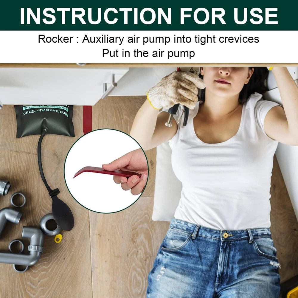 Air Wedge Bag Pump Kit Inflatable Leveling Tool For Window Door Alignment 300LB