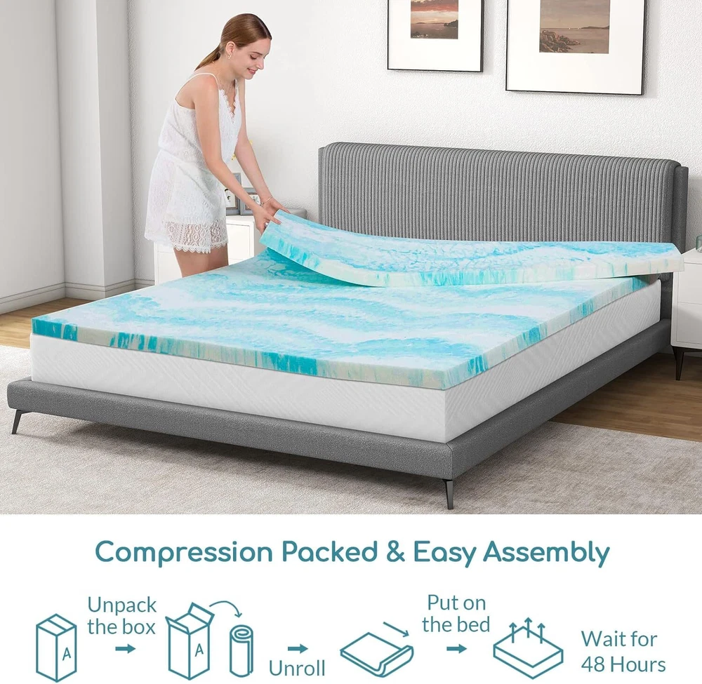 Airdown Mattress Topper, 2 Inch Gel Infused Memory Foam Twin, Blue