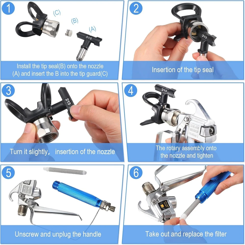 12 Pieces Airless Sprayer Tips Set There are a variety of spray tips models to choose from to meet your different needs. The airless spray nozzles are suitable for paint, furniture, fence, home decoration, industrial fine paint and more. Material: Tungsten steel, plastic, nylon, hard alloy. Color: as shown in pictures Package includes: 1 x airless sprayer gun + 5 x airless spray paint nozzles + 5 x paint spray gun filters + 1 x nozzle tip guard protector Notes: Manual measurement, please allow slight errors on size. The color may exist a slight difference due to different screen displays. How To Use Car Fence Factory