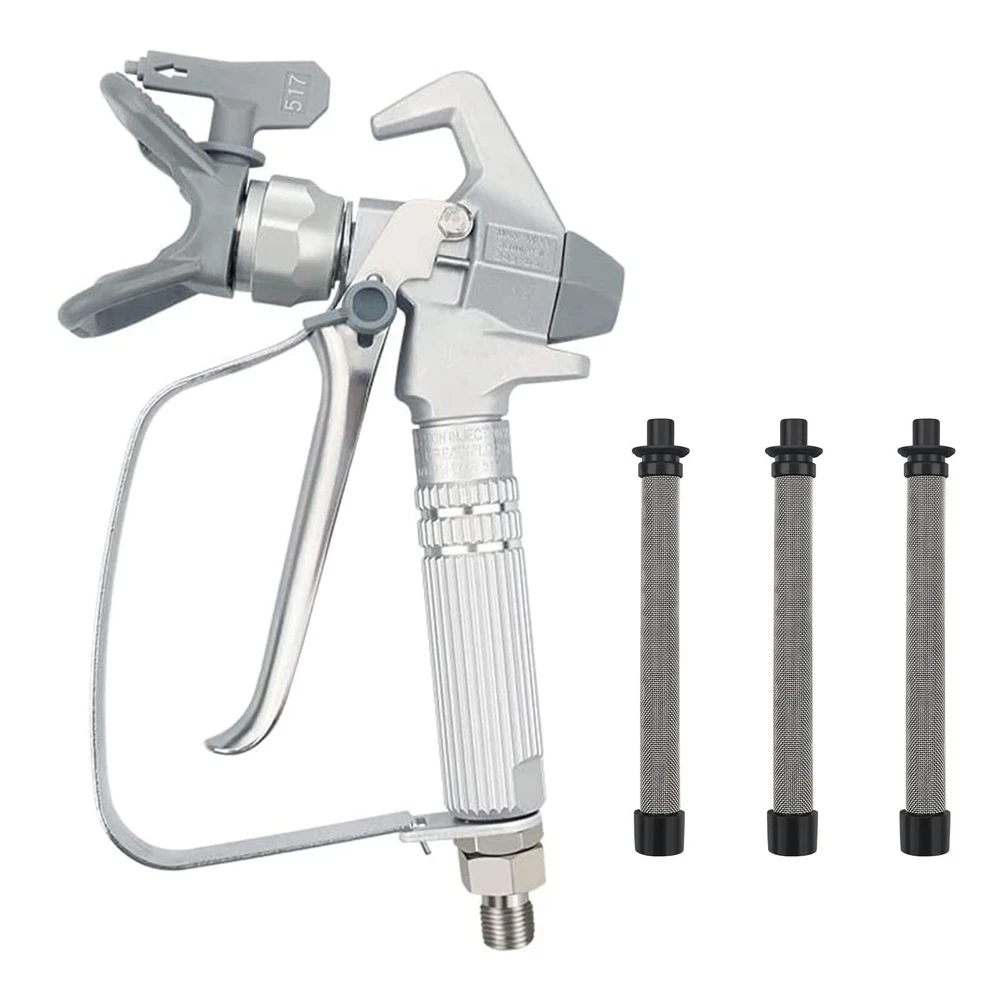 Airless Paint Spray Gun Sprayer High Pressure 3600 PSI 517 Nozzle Tip for Sprayer [No Leakage]High degree atomizing paint, spray width 10inch.Thumb engaged safety lock allows you to lock the handle when not spraying.Promise that the paint will not leak, will not drip, keep your clean working environment and better than the rest of the market [Cost-effective] Model JW-G3. The airless paint spray gun made of high quality aluminum alloy, strong wear resistance, with GDO gun needle imported from Germany.A variety of coatings including primers can be sprayed [More Professional] Industrial grade XTR high pressure airless gun. Maximum operating pressure of 3600 PSI and easily cope with various working environments [Flexible Partner] Strict and standardized quality control to maintain the best feel. Replaceable in-handle paint filter reduces tip clogging and improves the finish. Replaceable gun needle keeps maintenance simple [Security] Airless spraying is high pressure spraying. If there's a blast, it's enough to hurt people. The airless paint spray gun for 4 level safety factor, bursting pressure is 4 times of the nominal pressure, to ensure your safety