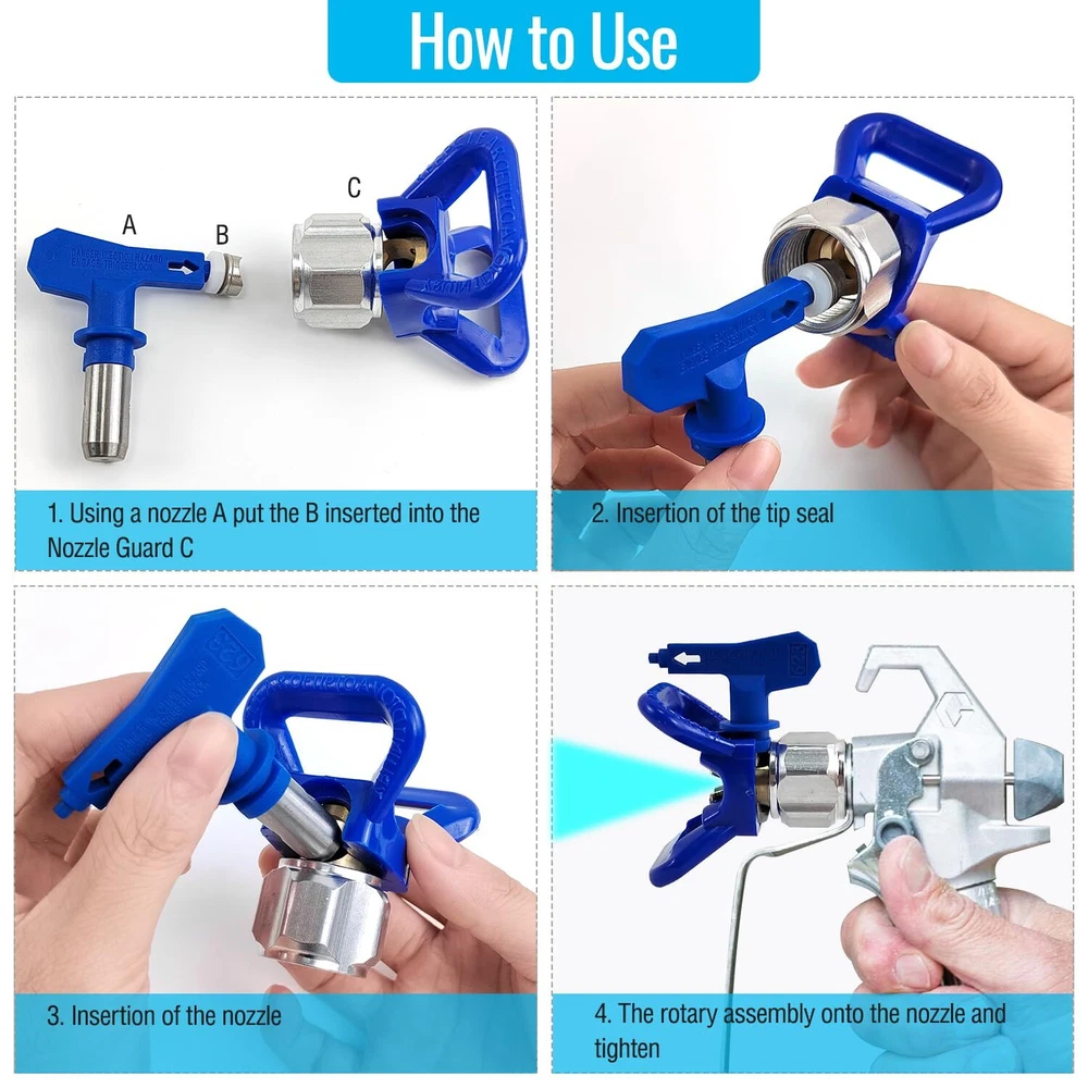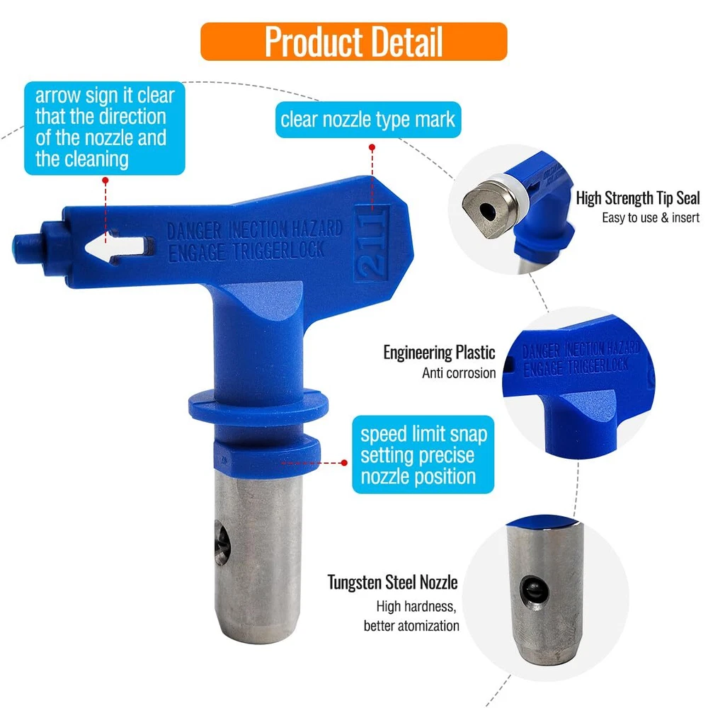 Product Description Dear Friend If your area is located in PR,HI,VI,AE,AP,AK,GU,AS,MP area, Please don't place an order. We can't ship the product to PR,HI,VI,AE,AP,AK,GU,AS,MP area. Thanks for your understanding. Sincerely! Airless spray gun accessories,Nozzle protection seat,Spray Paint Machine Parts About this item Practical: Our reversible spray paint nozzle set can be sprayed stably, the coating is uniform and delicate, which can effectively reduce the loss. It is a must-have painting accessory for painters and decorators. Model: Our airless paint sprayer has 6 models: 211, 315, 417, 515, 517, 623. The spraying angle is 20° - 60°, the range of spray width of paint sprayer gun can be seen in the 5th picture. Material: Our airless paint spray gun tip set is made of high -hardness tungsten steel. It is strong and durable, not easy to wear, and has a long service life. High precision, spray stable. Easy to use and clean: Upgrade airless paint spray nozzle can be installed quickly in a short time without using tools. After use, you only need to rotate the nozzle to clean it, which is convenient and fast. Applicable scenario: We provide you with 6 spray paint nozzles, 2 protective seats, and 6 filters. It can be used for house renovation, hull painting, car painting and other scenarios to meet your daily painting needs. You will receive 5 models of nozzles, each with a nozzle seal that prevents paint penetration. Installation steps (refer to the 7th picture) Step 1: Insert the nozzle seal into the protective base. Step 2: Insert the nozzle into the protective base and rotate it to secure it. Step 3: Attach the protective base to the air spray gun and it is ready for use. Note: After use, the nozzle can be rotated for cleaning. Payment Policy Shipping Policy Returns Policy 1. Paypal ONLY . 2. We ONLY ship to your PAYPAL verified address for more safely, so please make sure your shipping address is correct before you buy item. 3. Buyer need ship to other address (not Paypal confirmed address) should contact us before buy item. Order will be handled within 3 working days ( Excluding Weekends and Public Holidays) after your payment clear.And Your items will be delivered without tracking number,it means the delivery time takes about 1 -5 working days to reach you. please note this. We ship to Paypal confirmed address ONLY. Please make sure your address in PayPal is matched with your shipping address before you pay. Sellers are not responsible for service transit time. Transit times are provided by the carrier, exclude weekends and holidays, and may vary with package origin and destination, particularly during peak periods. Attention: Please contact us via ebay message like the way shown above before starting a returnrequest, so we can deal with your issue quickly and efficiently. 1.Return this item. 2. Select a reason: please choose"It's the wrong size or doesn't fit" 3. 30 days Warranty from the date of purchase covering manufacturing defects, but doesn't cover items that have seen abused, burned and damaged in any form.Please contact us if you have NOT received item beyond 5 working days, we will check it with post office and resend any missing item 4. If you return an item purchased from us, it must be back in Factory Condition. This includes packaging, inserts, manuals etc. Please allow up to 5 Working Days for us to process your returned item.Thanks!