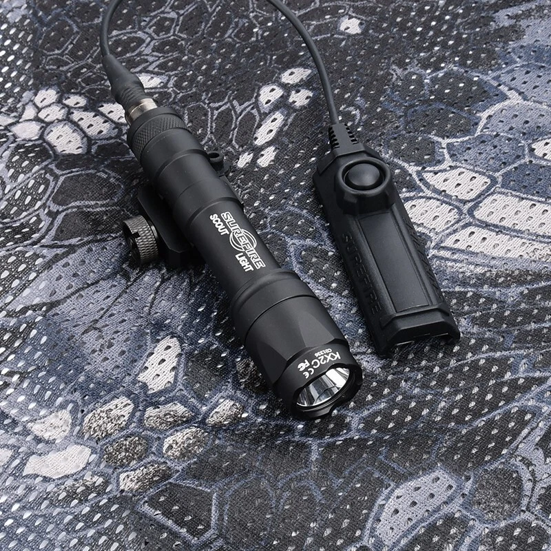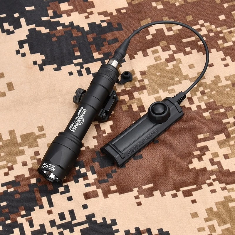 WADSN Tactical SF M600 M300 Airsoft Flashlight Weapon Light Dual Functiom Pressure Switch Rifle White LED Hunting Lamp Model: M300 M600 Flashlight Color:BK / DE Material:Aluminum alloy/Nylon plastic Flashlight Fit:20mm Picatinny Rail Switch Fit:20mm Rail Brightness:M300(510 Lumens)/M600(600 Lumens) Battery:16340 Or CR123A (Not included) Function:Momentary/Constant