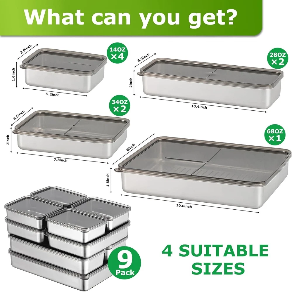 Versatile Airtight Deli Meat Storage Containers - Dishwasher Safe & Hygienic ‹ › ‹ › ‹ › ‹ › ‹ › ‹ › ‹ › ‹ › ‹ › Versatile Airtight Deli Meat Storage Containers - Dishwasher Safe & Hygienic Innovative Design: Uniquely crafted bottoms with raised stripes reduce direct contact between food and container. Helps maintain optimal hygiene levels, ensuring a cleaner storage environment. Versatile Sizes to Meet Your Needs: 4 containers for bacon or lunch meat (10.4 x 3.9 x 1.97 inches). 2 compact cheese containers for the refrigerator (5.1 x 3.9 x 1.81 inches). 2 medium-sized containers (7.7 x 5.5 x 1.81 inches). 1 large container (10.6 x 7.9 x 1.81 inches). Durable Stainless Steel: Crafted from premium stainless steel with a sleek black coating. Designed for long-term use while enhancing your kitchen's aesthetic. Maximum Freshness: Sealed plastic lid locks in freshness and prevents gas exchange. Keep your food fresh, tasty, and odor-free for extended periods. Thoughtful Gift: Ideal for moms, home cooks, and anyone who cherishes an organized kitchen. A practical and stylish gift for loved ones or colleagues. Why Choose Our Airtight Deli Meat Storage Containers? Elevate your food storage game with our Versatile Airtight Deli Meat Storage Containers. Designed with innovation and hygiene in mind, these containers not only keep your food fresh but also bring elegance to your kitchen. The variety of sizes allows for seamless meal prep and organization while the premium stainless steel construction ensures durability. Ideal for gifting, they simplify food storage while adding a touch of sophistication. Invest in cleanliness and style—order your set of Versatile Airtight Deli Meat Storage Containers today! Shipping Free & Fast Shipping - We offer free shipping to most of the USA with a normal delivery time of 3-10 businessdays. However, due to various situations, additional delivery time (up to 3 weeks) may be required for some items. Alternative Carriers - We may use alternative carriers (e.g. USPS, FedEx, UPS, etc.) to ensure your package arrives safely and on time. Due to the use of multiple carriers, we are unable to provide a tracking number automatically. Handling Time - Orders are processed and shipped within 1-5 business days of receiving cleared payment. Shipping Restrictions - Shipping to Alaska, Hawaii, Puerto Rico, Guam, and other US territories may incur shipping charges or delivery restrictions. Please contact us before ordering, or your order can be refunded/cancelled. State Restrictions - There may be restrictions based on your state of purchase. For example, certain items may not be shipped to California due to state regulations. Contact for Tracking Updates - If you require tracking updates or have any concerns about the delivery of your order, please feel free to contact us, and we will be happy to assist you. Return Please see our ebay return policy. We do not accept return on most products. This is to avoid customers mis-using ebay returns. All sales are final. Please be sure to check the return policy listed at the top of the listing. In rare cases, we may accept returns, if the buyer pays both ways shipping and 20% restocking fee. If you are un-sure of return policy of a particular item, please ask before buying. Payment We accept all major credit cards, PayPal, and Apple Pay for your convenience. Your payment information is secure and encrypted to ensure a safe and seamless transaction. Please complete your payment within 3 days of purchase to avoid any delays in shipping. Feedback Your feedback is extremely important to us. We strive to provide the best products and customer service possible. If you are satisfied with your purchase, please take a moment to leave us a positive review. If you have any concerns or issues with your order, please contact us before leaving negative feedback. We are committed to resolving any problems and ensuring your satisfaction. Contact Us If you have any questions or concerns, please feel free to reach out to our customer support team. You can contact us through the eBay messaging system. We are available Monday to Friday, 9:00 am to 5:00 pm EST, and we will do our best to respond to your inquiry within 24 hours. Buy it now and enjoy a pleasant shopping experience! UPC: Not Set Unit Quantity: 1 Material: Stainless Steel Features: Airtight,Dishwasher Safe,Reusable,Hygienic Design,Portable Set Includes: Lid Character: Not Set Theme: Not Set Department: Unisex Adult Brand: Unbranded Item Height: Food Storage Containers Item Length: Food Storage Containers Item Width: Food Storage Containers Number of Items in Set: 9 Color: Stainless Steel Type: Not Set Shape: Rectangular Capacity: 20.8 pounds Lid Type: Latch MPN: Not Set Character Family: Not Set Style: Modern Country/Region of Manufacture: Not Set Item Depth: 1.97 in Pattern: Not Set Item Diameter: Not Set Manufacturer Warranty: Not Set Model: Not Set Unit Type: Unit Personalize: Not Set
