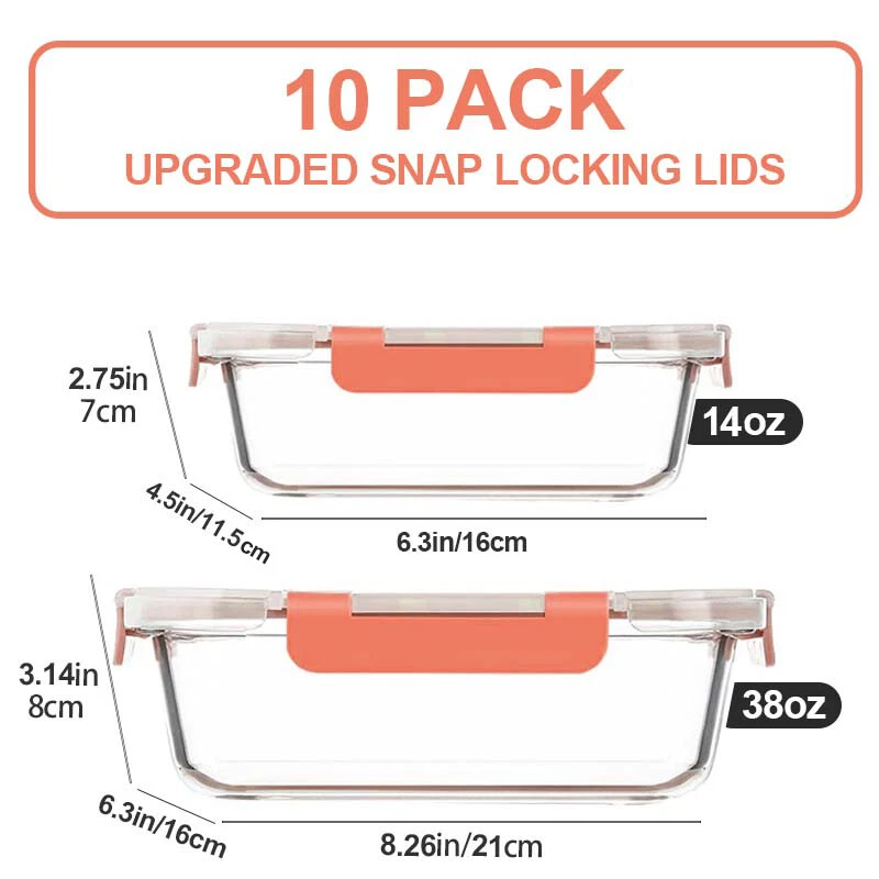 Item description from the seller Buling 20 Pc Glass Food Storage Containers Airtight Lids Microwave/Oven/Freezer & Dishwasher Safe - Steam Release Valve BPA/ PVC-Free -Small & Large Reusable Square and Circle& Rectangle Bento Containers 20 piece set - This set includes 10pieces glass meal prep containers and 10 pieces plastic lids. With three shapes and 10different sizes, you can find containers that are suitable for storing lunches and leftovers, as well as small containers that are suitable for sauces and snacks. These containers with lids are ideal for meal prepping, portion control, and providing convenience for taking meals to office, gym, picnic or travel. BUILT IN VENT - If you want a container that you can pop directly in the microwave or oven, look for a glass container with built-in vents under the locking lid. This type of lid provides the airtight storage you need to keep your food fresh and the convenience you need to reheat food in seconds Airtight And Watertight Silicone Sealed BPA-Free Plastic Lid. Plus Four Tab Locking System. VERSATILE USE - Our food containers are made of high-quality borosilicate glass, ensuring a long service life and providing you with peace of mind. You can use them with confidence in ovens, microwaves, dishwashers (with lids removed), and freezers, as they are BPA free and suitable for daily use.The lid adopts an airtight sealing design to prevent overflow and keep the food fresh. They are easy to clean, suitable for home, office, meal preparation, and dining out, catering to different lifestyles. Multiple options- These containers are not only used for storing food; They can also be used as convenient containers for preparing meals. Whether you are preparing meals or packing work lunches, our glass food storage containers are the ideal choice. Suitable for families, professionals, and students, providing flexible food storage solutions for daily use Elaborate design - Our innovative design simplifies the storage and inspection of items. It helps save valuable space in kitchen cabinets or refrigerators. Transparent glass provides a beautiful and charming display cabinet, making it effortless to identify the items stored inside. On Jan 8, 2025 at 03:04:14 PST, seller added the following information: