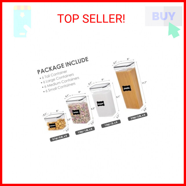 Airtight Food Storage Containers with Lids, Vtopmart 24 pcs Plastic Kitchen and Pantry Organization Canisters for Cereal, Dry Food, Flour and Sugar, BPA Free, Includes 24 Labels,Black - Help Organize Your Kitchen and Pantry— Imagine every time walking to your kitchen or pantry, found everything is neatly organized. No longer messy, you can get everything you want very quickly. With the stackable and space-saving design, these containers will make more efficient use of every inch of your kitchen pantry cabinets. - 4 Size Combinations Fit Your Needs — Our kitchen storage container set comes in 4 different sizes. Includes 6 Tall Container (2.5quart/2.8 liters), 6 Large Containers (1.8quart/2.0 liters), 6 Medium Containers (1.5quart/1.6 liters), 6 Small Containers (0.7quart/0.8 liters). Perfect for storing spaghetti, baking supplies, cereal, flour, sugar, oats, pasta, rice, coffee, tea, snacks, nuts and other dry goods. - Airtight Containers Keep Food Fresh — The side-locking lids with silicone gasket make these storage containers airtight, and the top flips open easily. The airtight storage system will always keep your food dry and fresh. All have the same lids make it easy to wash dry and reuse with ease. - BPA Free and Food Grade Material — Vtopmart pantry storage containers are made of durable plastic, BPA free, which have a longer life than many other brands plastic containers. Clear containers make it convenient to see what’s inside, you can easily get what you want without opening every container. - 24 Reusable Labels — Except 24pcs dry food storage containers, you will also receive 24pcs labels. They are reusable, you can switch contents whenever you need. Just wipe clean with a damp cloth to change what you have written, Peel and Re-stick. Payments We accept the following payment methods PayPal Support Our dedicated customer support team is here to assist you from 9AM to 5PM Monday through Friday, excluding public holidays. Should you reach out to us and not recieve an immediate response, it's likely due to a higher-than-usual volume of inquires. We want to reassure you that your concerns are important to us, and we're working dilligently to get back to you. Expect a response by the next business day at the latest. Your understanding and patience are greatly valued as we strive to provide you with the best support possible! Shipping All orders are processed within 5 business days. Shipping estimates may be shown on this listing by eBay, and these are often not an accurate reflection of our shipping times. If we are experiencing a high volume of orders, shipments may be delayed by a few days. Please allow additional days in transit for delivery. If there will be a significant delay in shipment of your order, we will contact you via message. Shipping rates & delivery estimates Shipping is often free, but if charges for your order apply they will be calculated and displayed at checkout.
