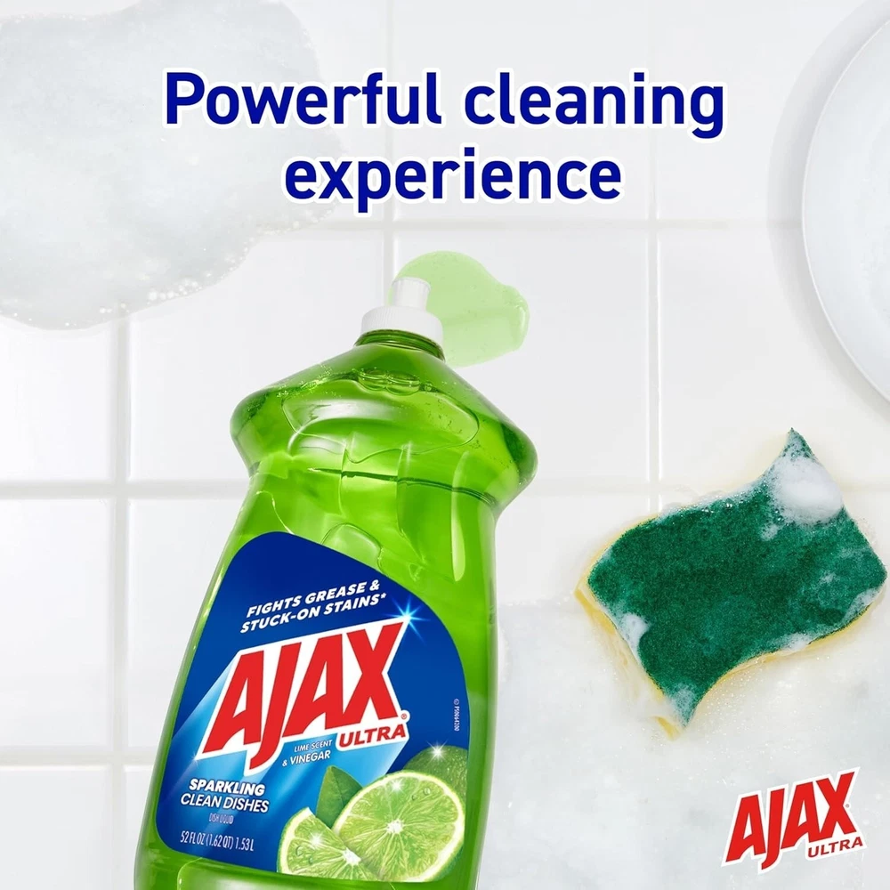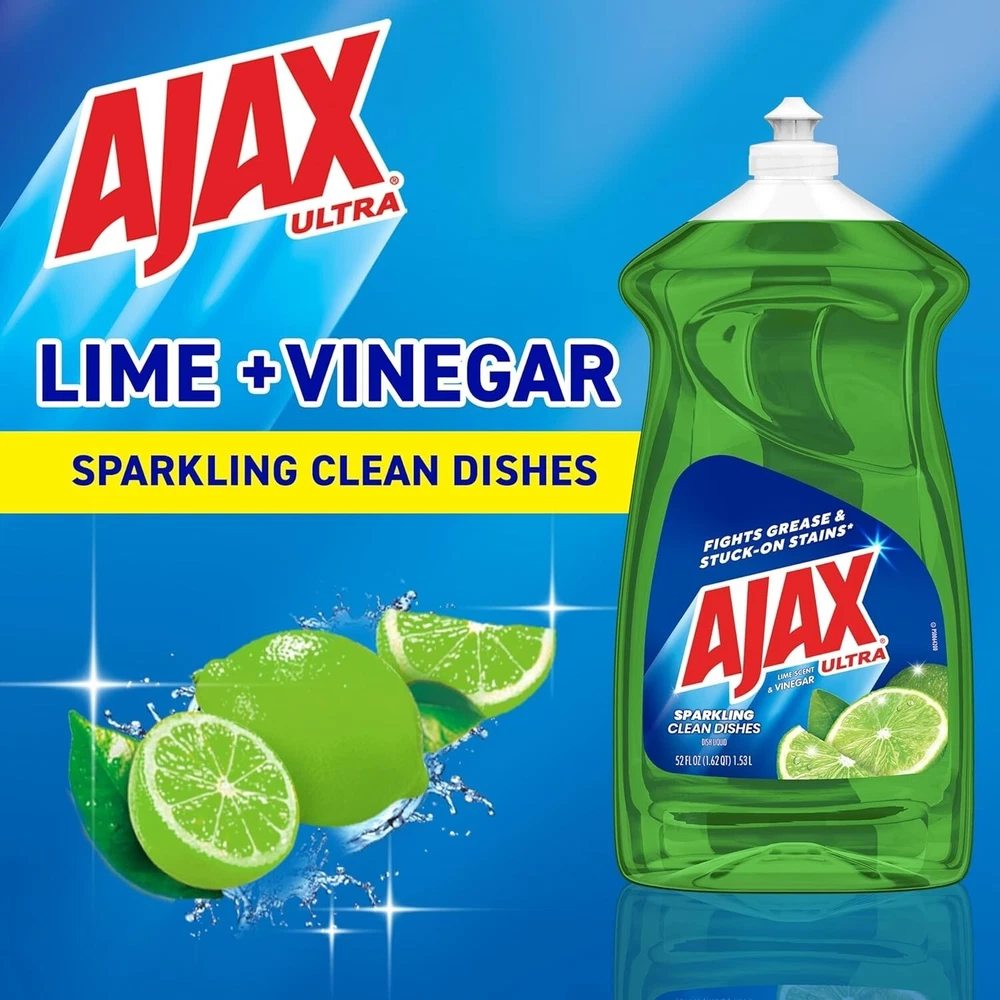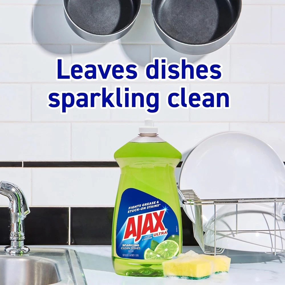 Ajax Ultra Bleach Alternative Liquid Dish Soap, Grapefruit - 52 Fluid Ounce About this item One 52 oz Bottle of Ajax Ultra Liquid Dish Soap Lime Scent and Vinegar, Sparkling Clean Dishes This liquid dish soap brings a freshness to your kitchen with a burst of limes This green dish soap provides a pleasant and powerful cleaning experience Enhance your cleaning arsenal by harnessing the natural power of vinegar, a versatile cleaner that effortlessly tackles tough stains and grime This dishwashing liquid is made with naturally inspired fragrances, zero parabens and no phosphates The power of Ajax kitchen dish soap goes beyond the sink. This versatile dish soap liquid allows you to pre-treat laundry, wash tires, and wipe down appliances Leave the grime to us so you can get back to what really matters 100% biodegradable active ingredients