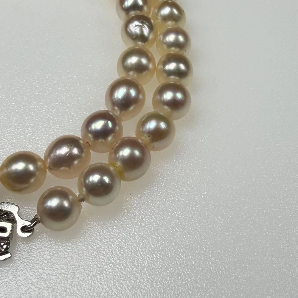 Akoya Pearl Double Strand Necklace 18K Gold 750 Diamond Clasp